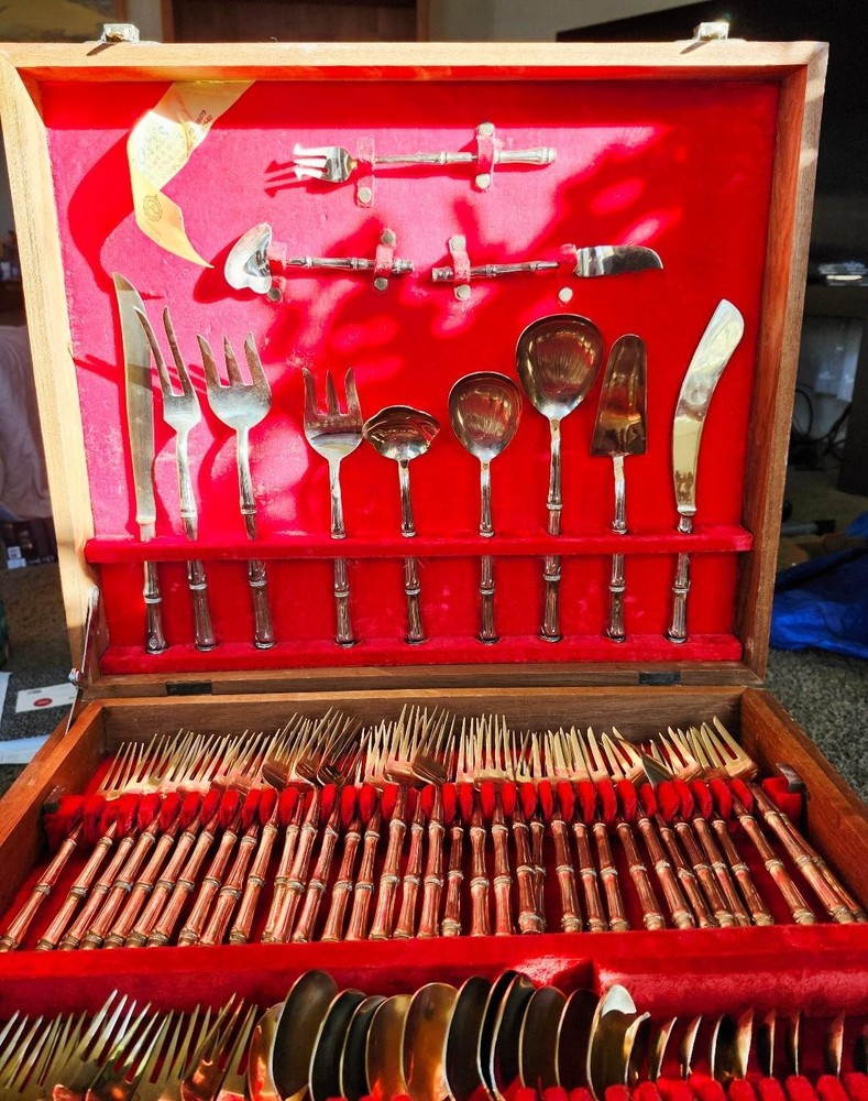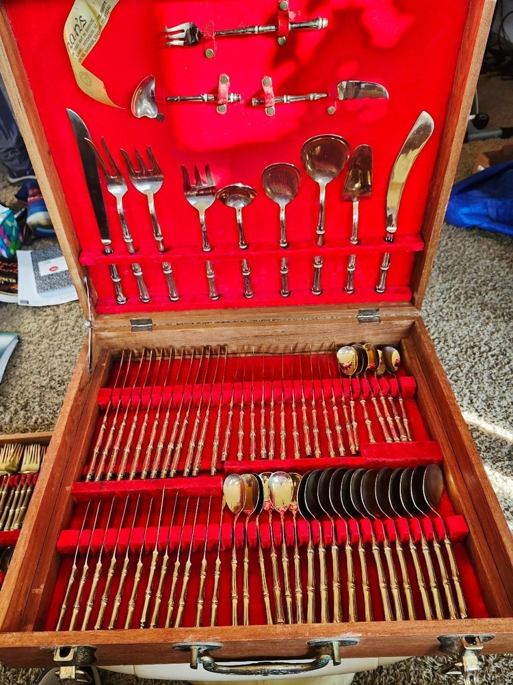 MCM Vintage Stainless Steel Japan Flatware Set Faux Teak Wood Handles 20PC