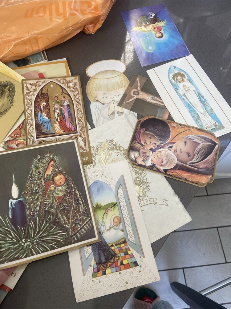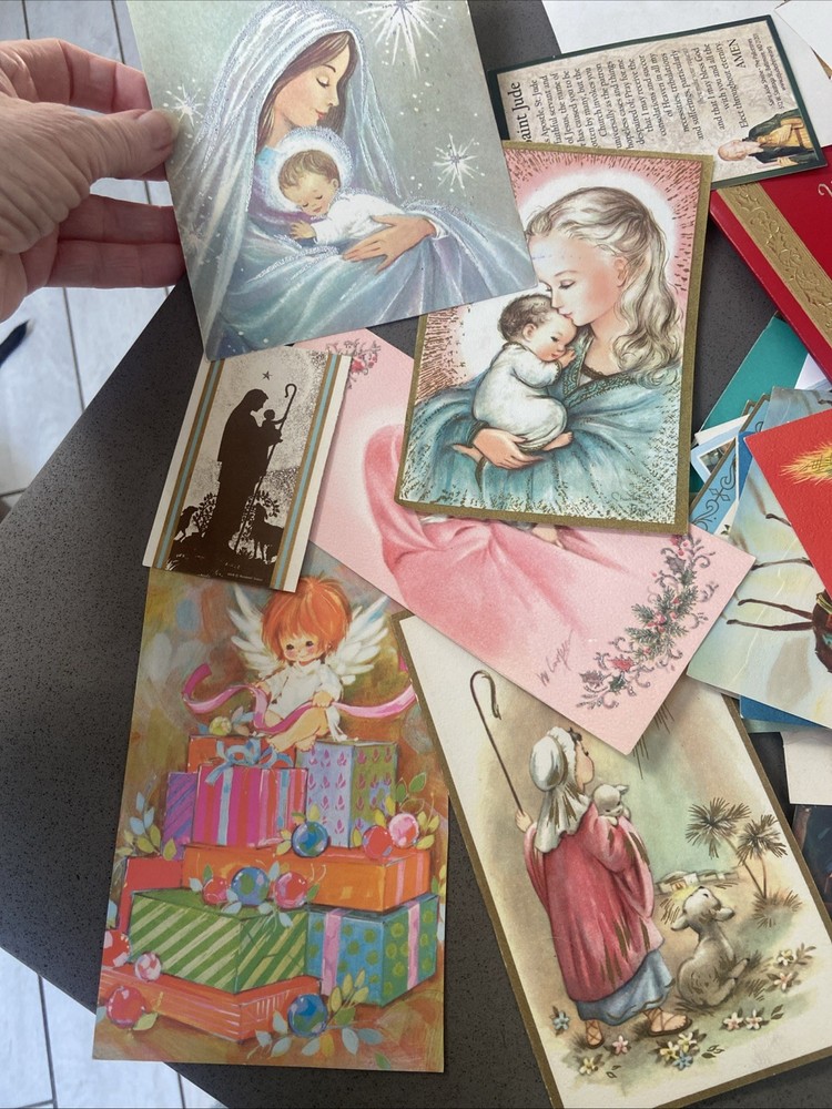 Guaranteed to be over 150 images, but I didn’t have time to count all of them. There are too many There are too many to take photos of, but I took a general sampling. Most of these are Christmas cards where the back has already been cut off. I’m assuming somebody was gonna do some sort of crafting with them. Some of them are images cut from old Bibles or newspaper clippings, but there are a lot of images to work with. This is a great bundle. See photos for a general sampling. This lot is sold as is.