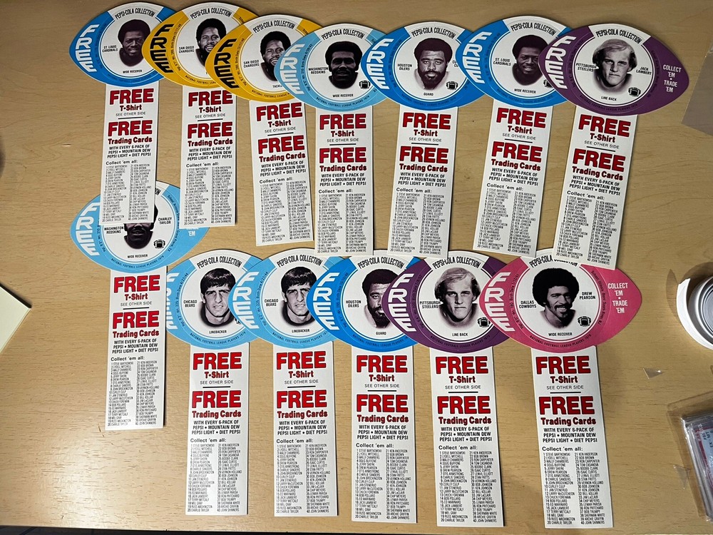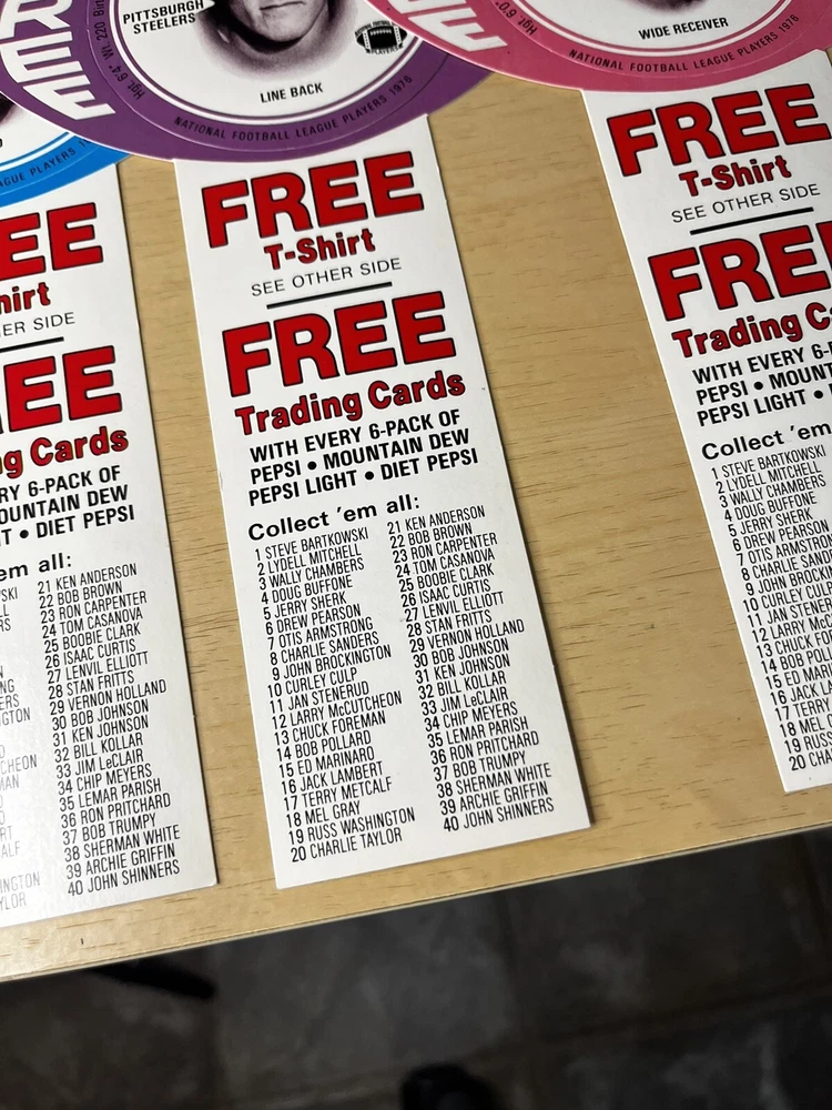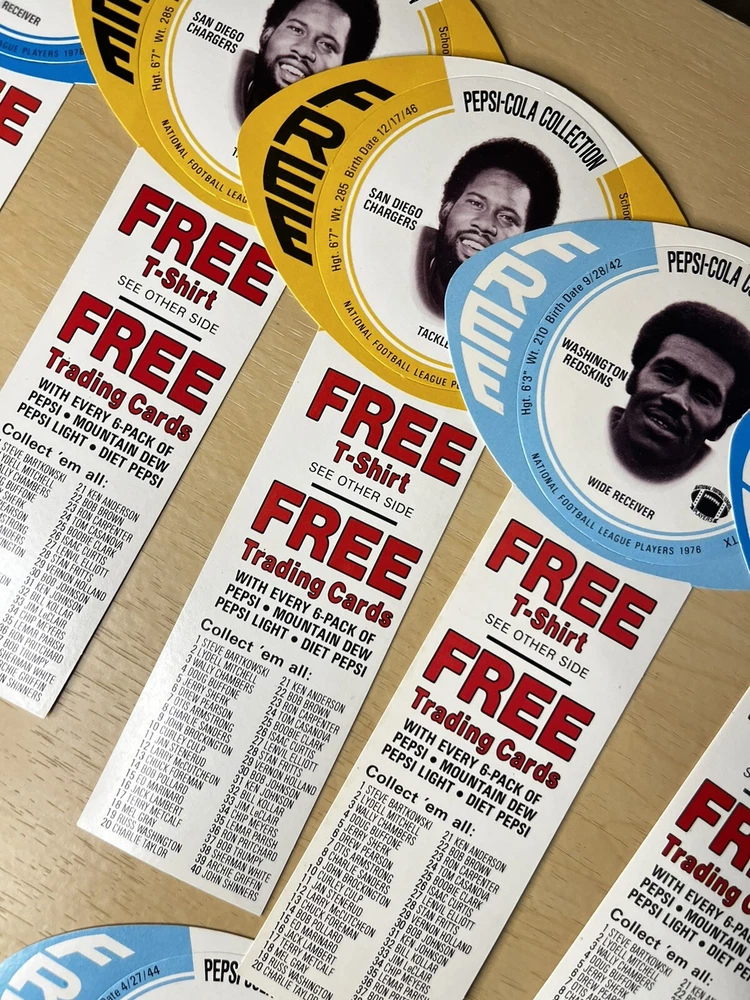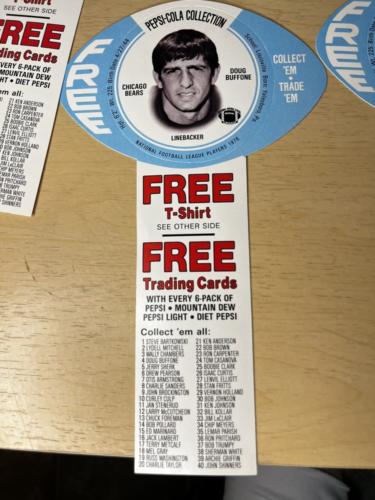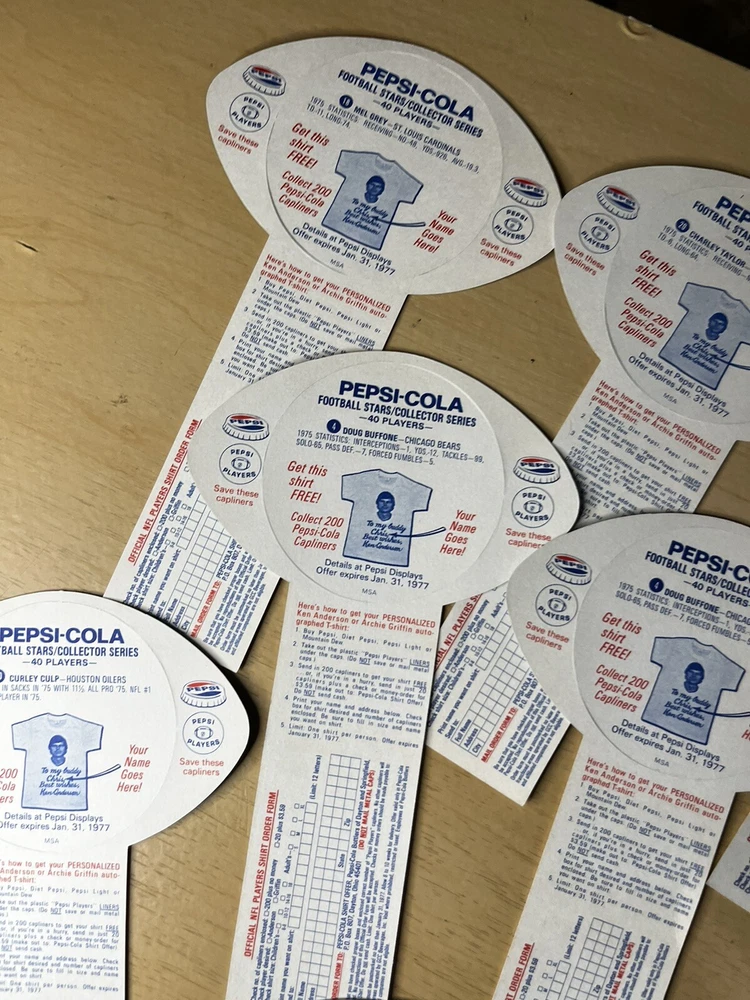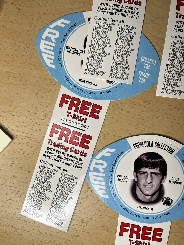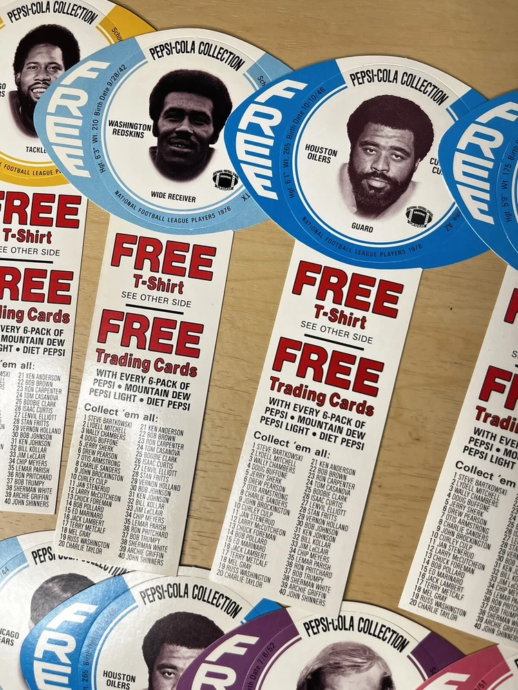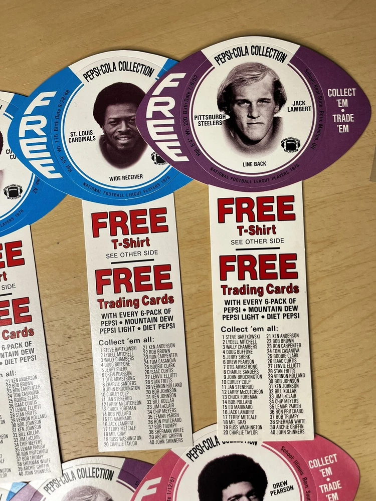 Brand:PepsiOriginal/Reproduction:OriginalCountry/Region of Manufacture:United StatesDate of Creation:1976Theme:SodaType of Advertising:football cardsColor:Multi-color