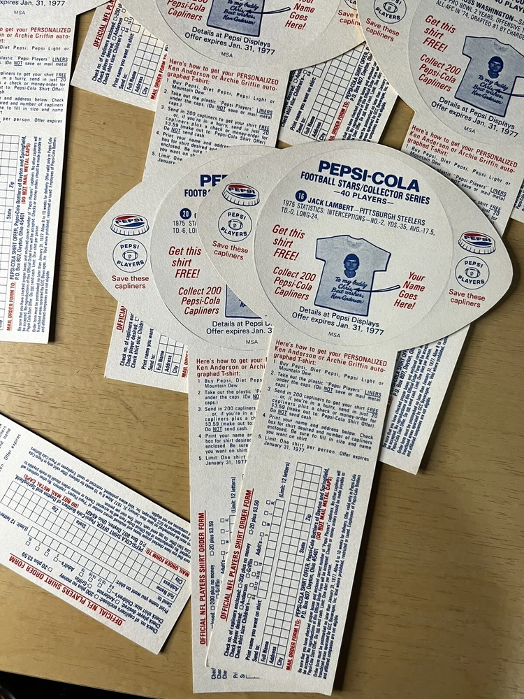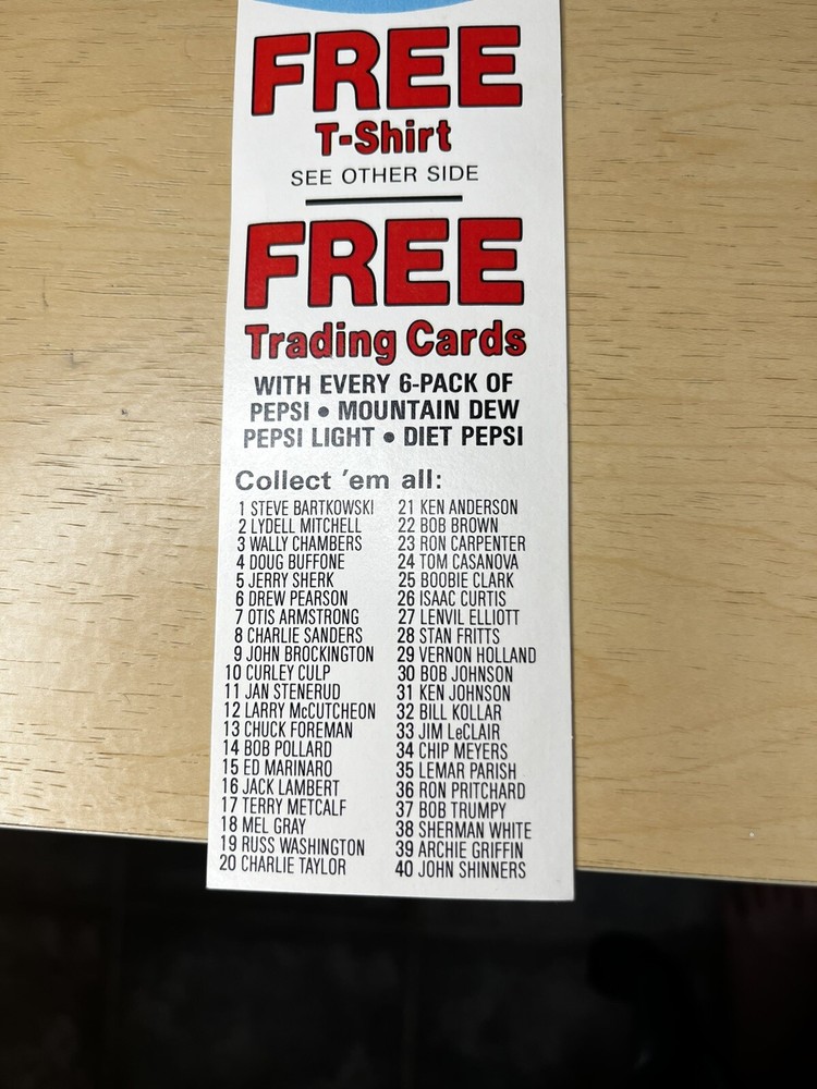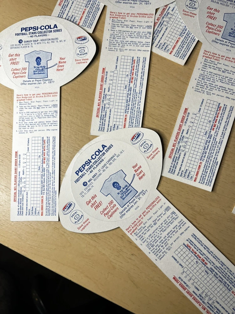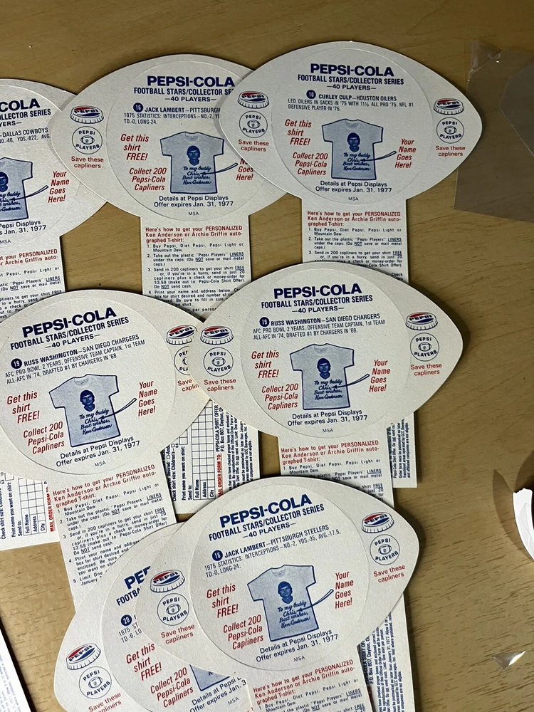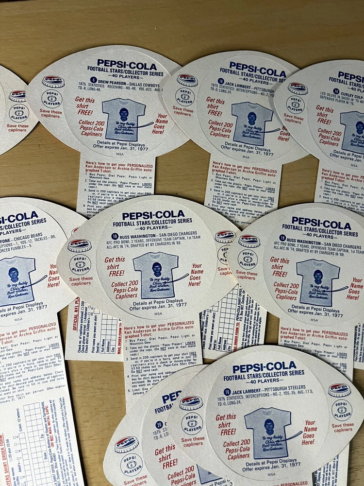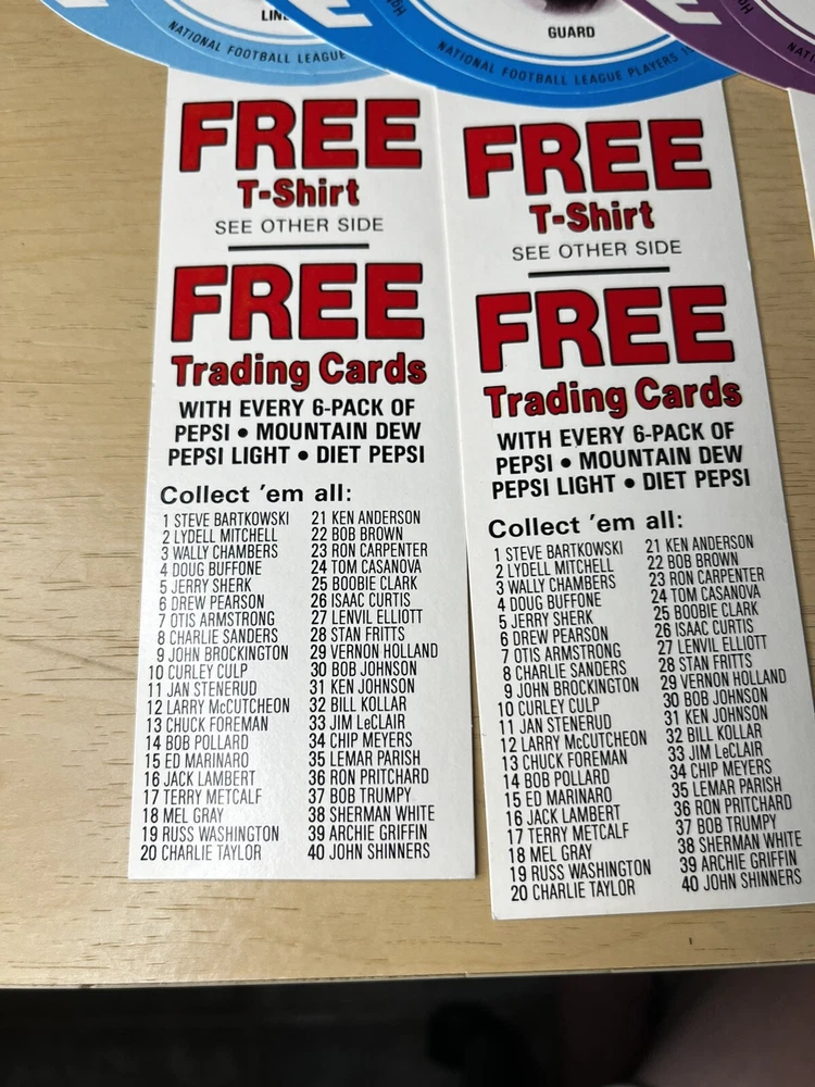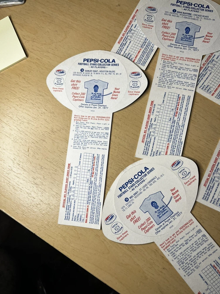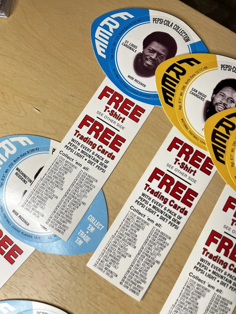 Brand:PepsiOriginal/Reproduction:OriginalCountry/Region of Manufacture:United StatesDate of Creation:1976Theme:SodaType of Advertising:football cardsColor:Multi-color