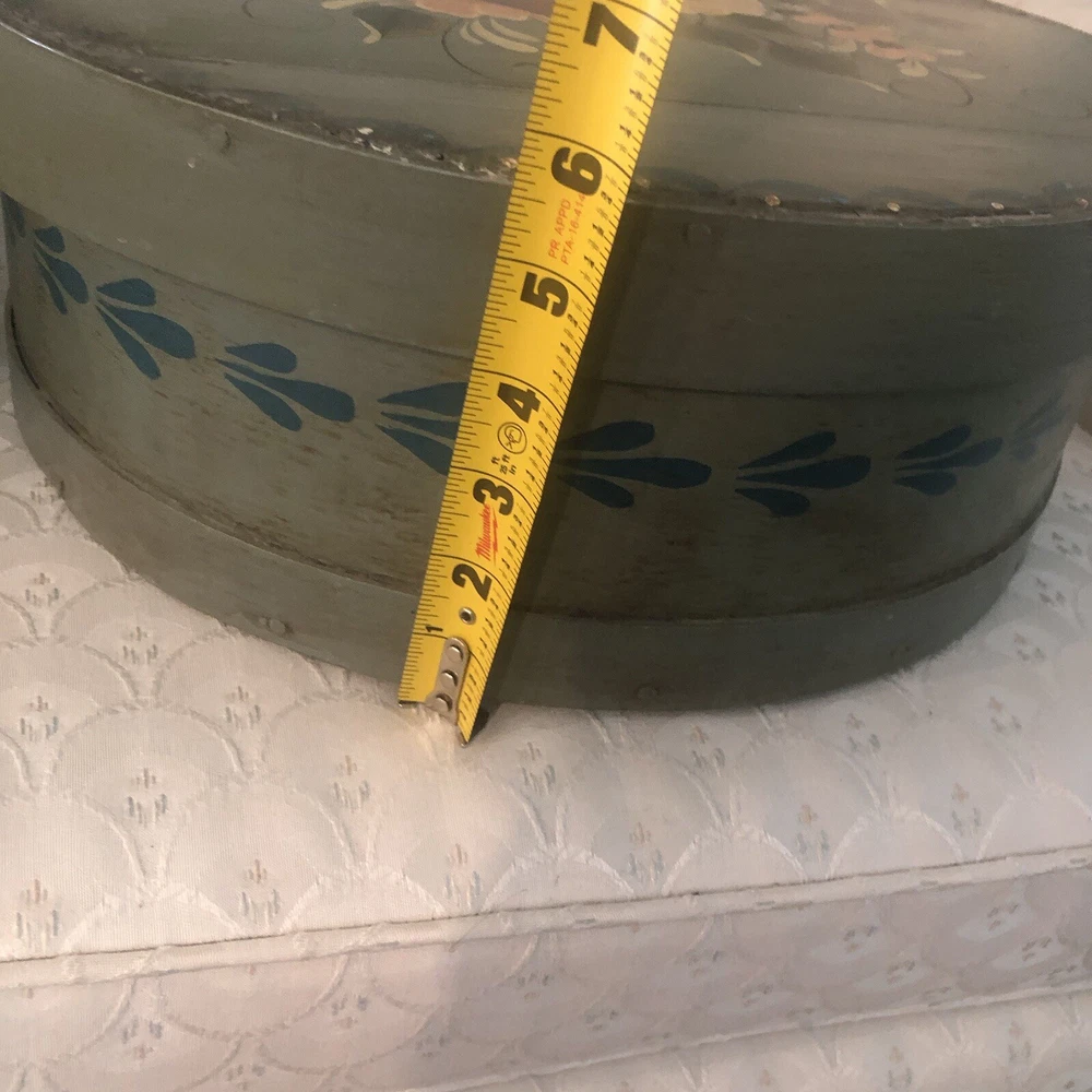 Time Period Manufactured:1980-1989Material:WoodRoom:Any RoomOriginal/Reproduction:OriginalColor:MulticolorSubject:floral and birdFeatures:Hand PaintedFinish:PaintedCustomized:NoOccasion:All OccasionsNumber in Pack:1Shape:RoundType:BoxSize:LargeEngraved:No