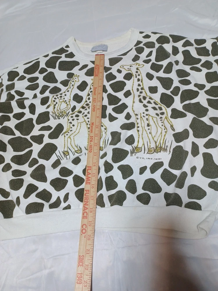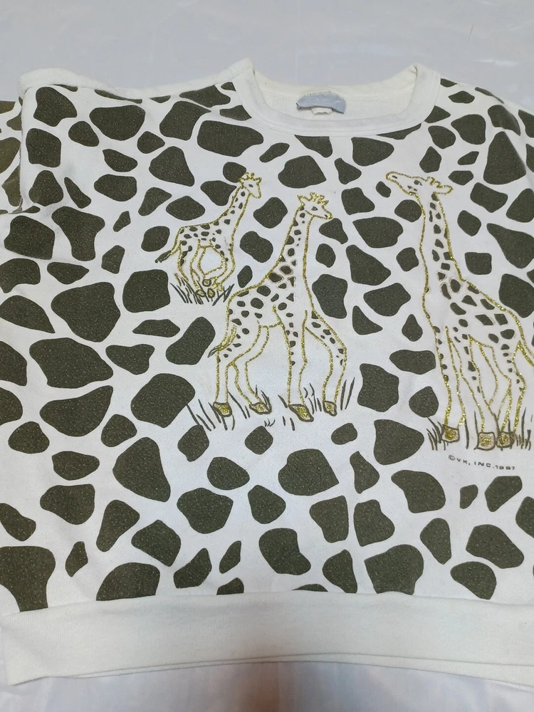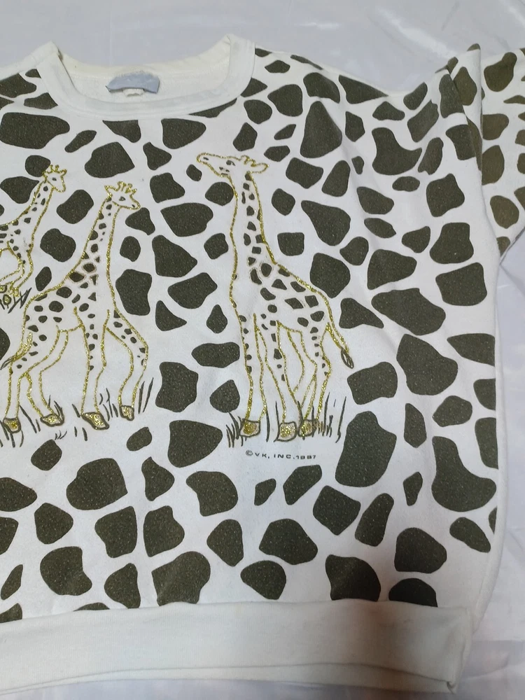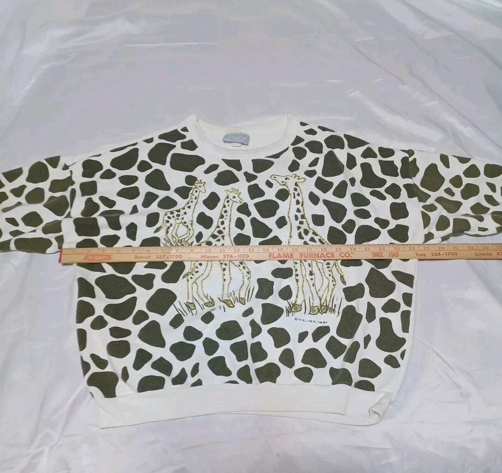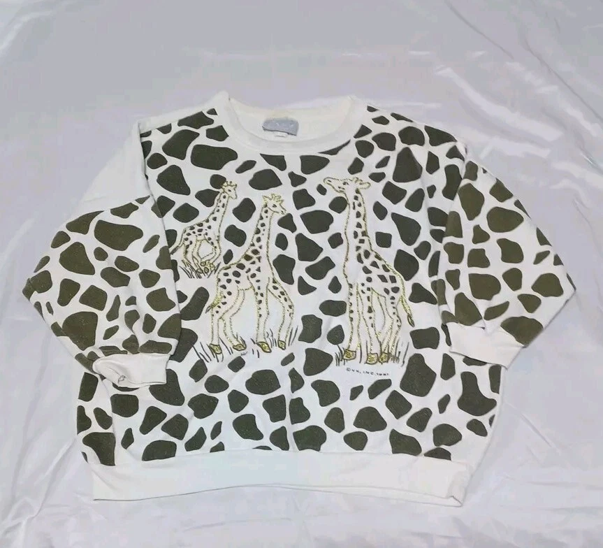 Vtg 1987 Giraffe Allover Print Crewneck Sweater ZAKY Made In USA