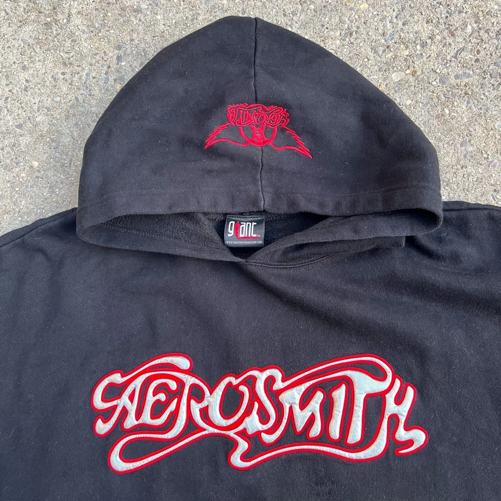 Raised metallic silver logo on front and red embroidered logo on hood Giant tag Y2K Pit to pit 27" Length 28"