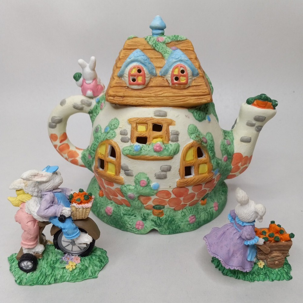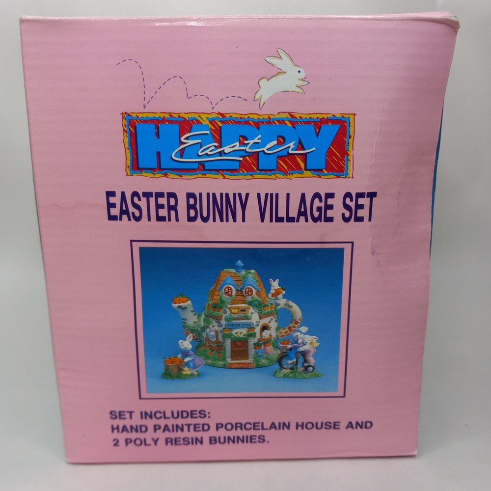 $ 7.92Vintage 1994 Happy Easter 5" Bunny Village Set Porcelain Warehouse & 2 Figurines
