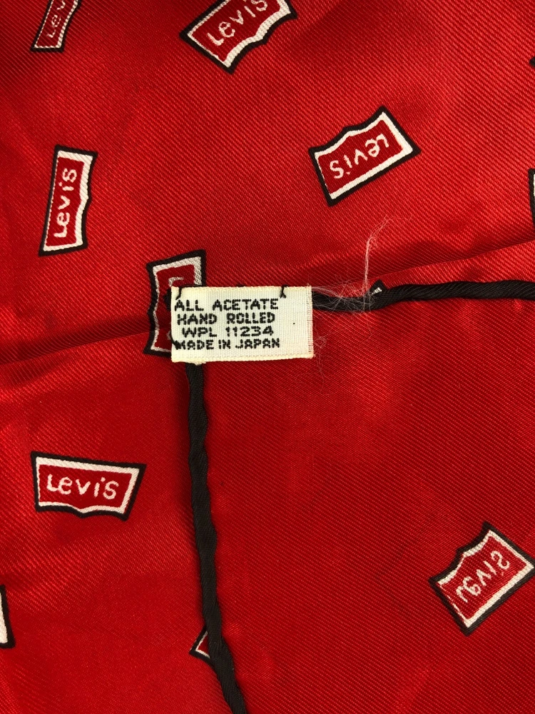 HomeVtg 25" Square Hand Rolled Red LEVI'S Silky Hanky Scarf Made in Japan 1970s