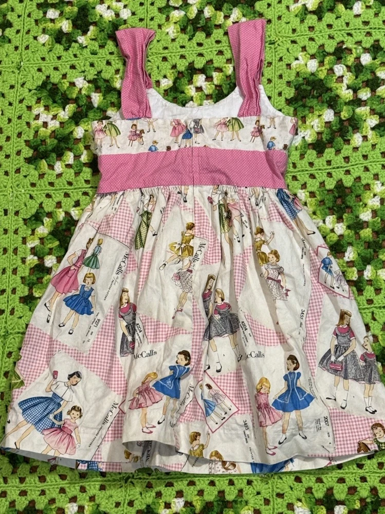 Vintage Handmade Daisy Kingdom Dress teddy bear bunny cat Print Easter Boho