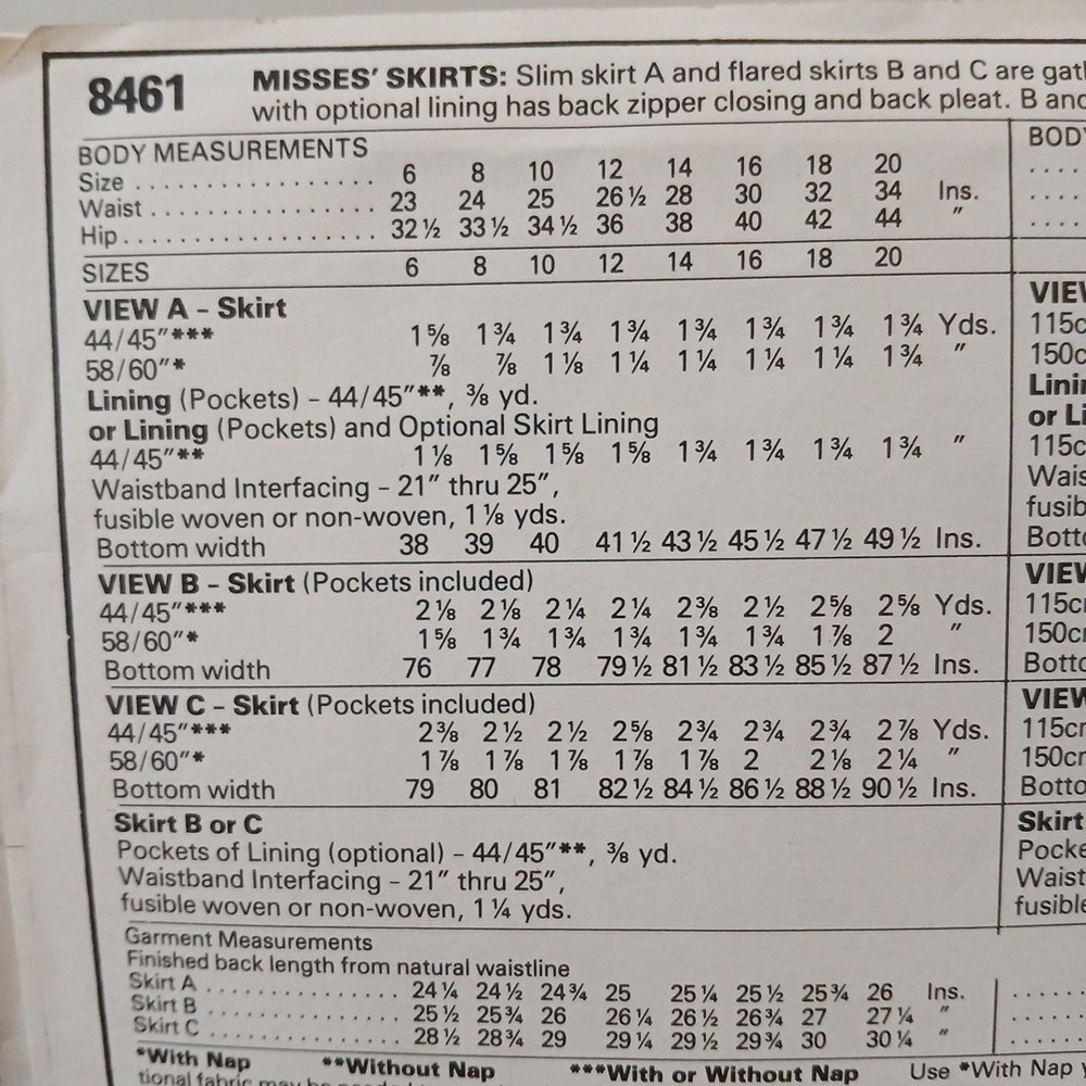 The product is a vintage 1980s McCall's sewing pattern for a skirt in size 10 with a waist measurement of 25 inches. It is uncut and designed for adult and teenage women. The pattern is compatible with sizes 8, 12, and L/M. Made in the United States, it captures the fashion trends of the 1980s and allows for the creation of a unique and retro-inspired skirt. Perfect for those who enjoy sewing and crafting with a touch of nostalgia.