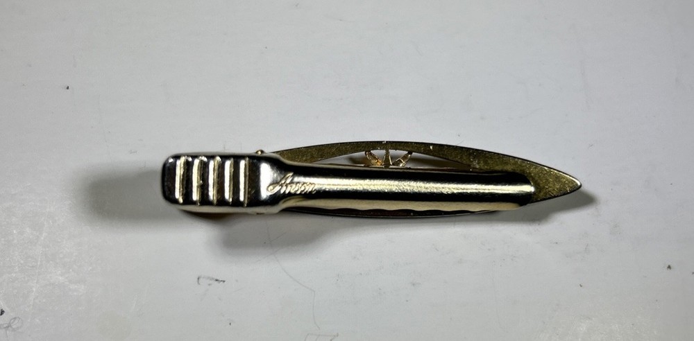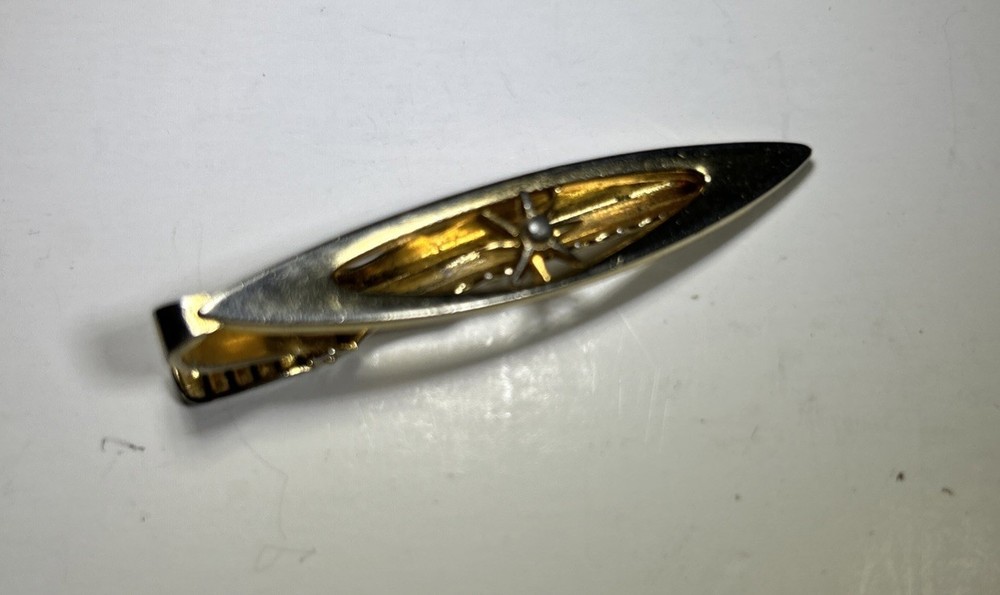 $ 26.14Vintage 24 Kt Gold Plated Tie Bar Clip w/ Chain Mid-Century Men’s Accessory