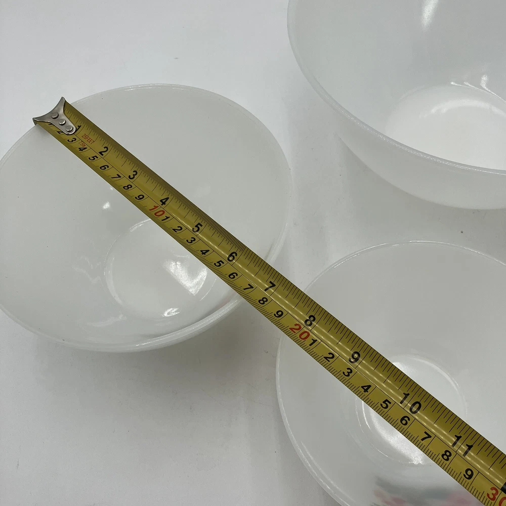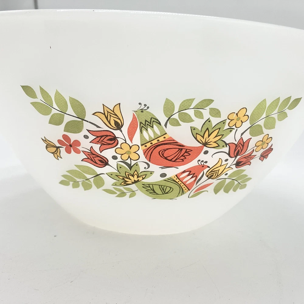 Add a touch of vintage charm to your dining table with this four-piece nesting bowl set from Arcopal France. The round bowls feature a delightful partridge bird pattern in multicolor and are made of high-quality milk glass. The set includes four bowls with a diameter of 9 inches, perfect for serving salads, fruits, or desserts. This mid-century modern style bowl set is an original piece from the 1960s and is perfect for all occasions. The set is easy to clean and maintain, and it is recommended to hand wash only. This Arcopal France bowl set is a great addition to any vintage dinnerware collection and is sure to impress your guests. CONDITON: No chips, cracks, damage. No dish washer damage. Has some very light scuffing due to previous usage. ****SHIPS NEXT BUSINESS DAY****