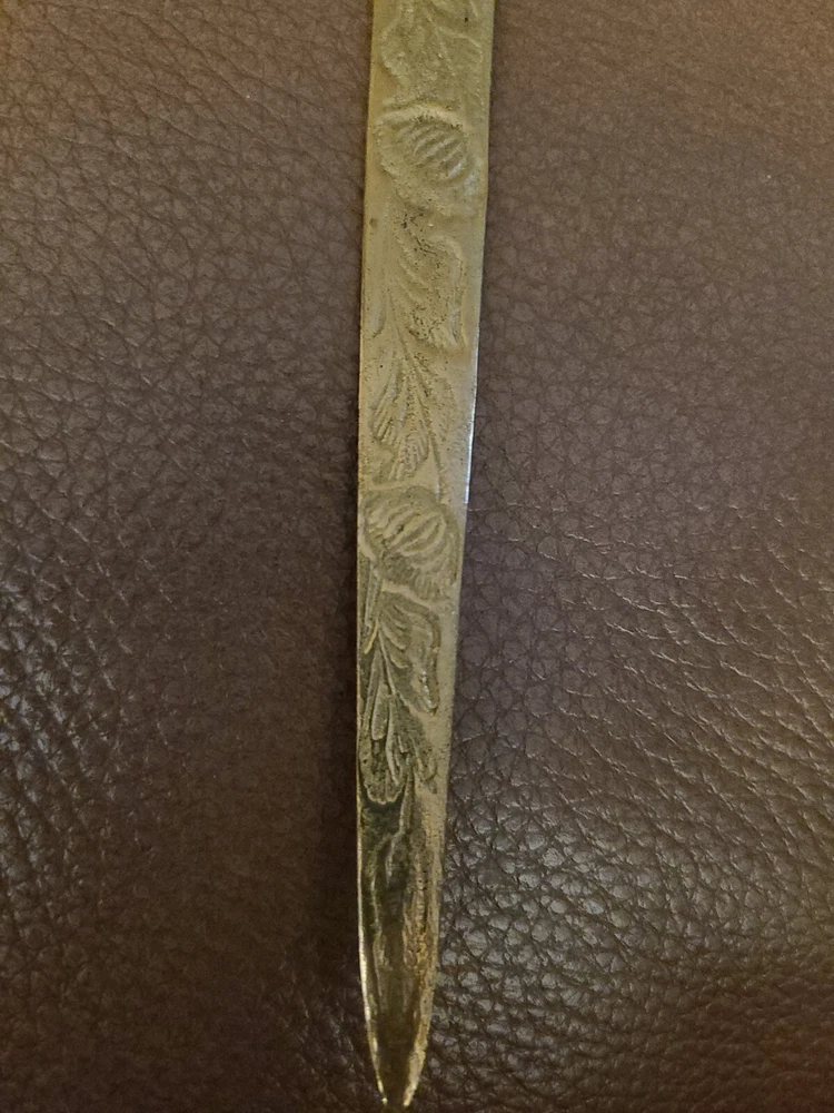 Vtg Brass Embossed Letter Opener.