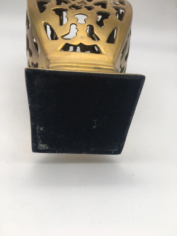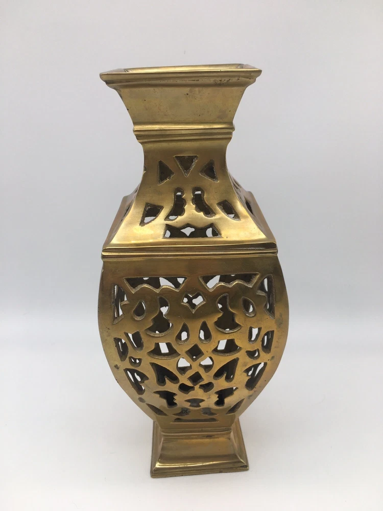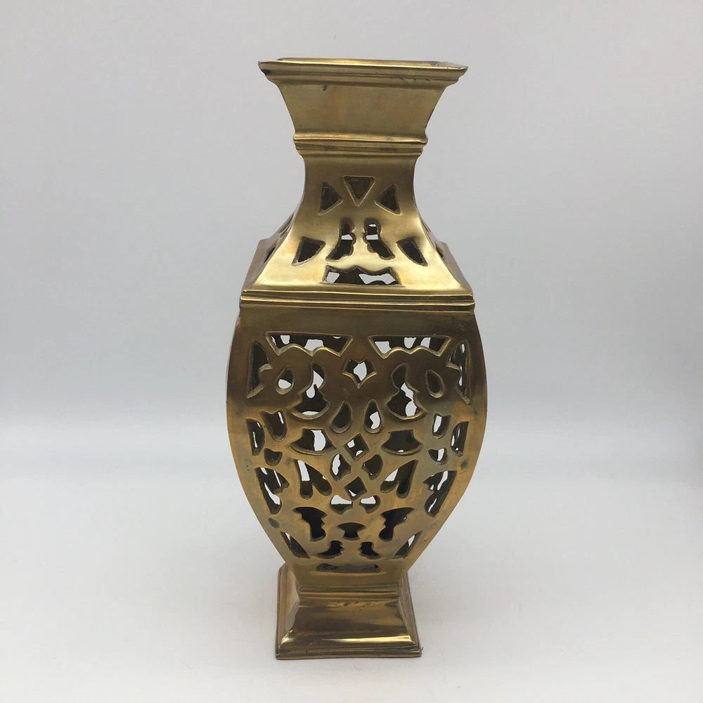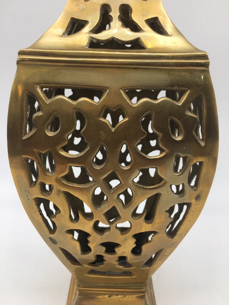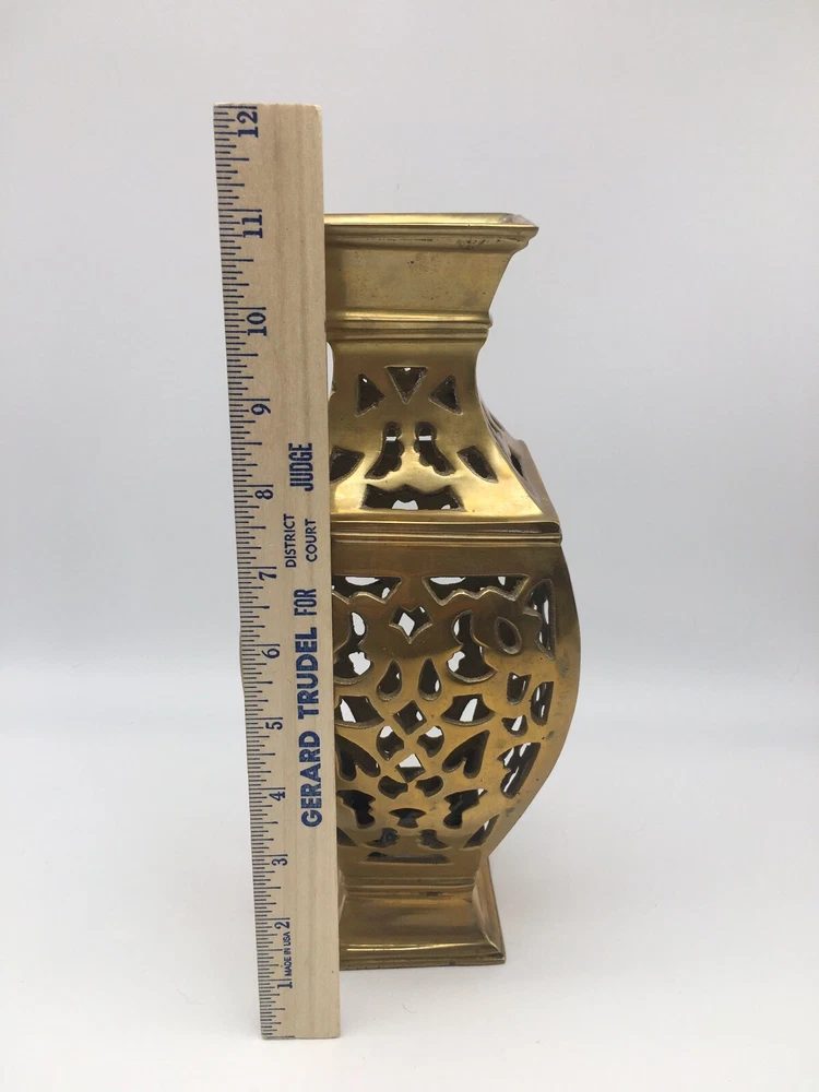 Vintage Brass Vase Filigree Design Heavy 11” India Boho Hollywood Regency. Condition is pre owned. Shipped USPS Ground Advantage. • Measures approximately 11” T x 4.25” W • Has light wear consistent with age, please see all photos