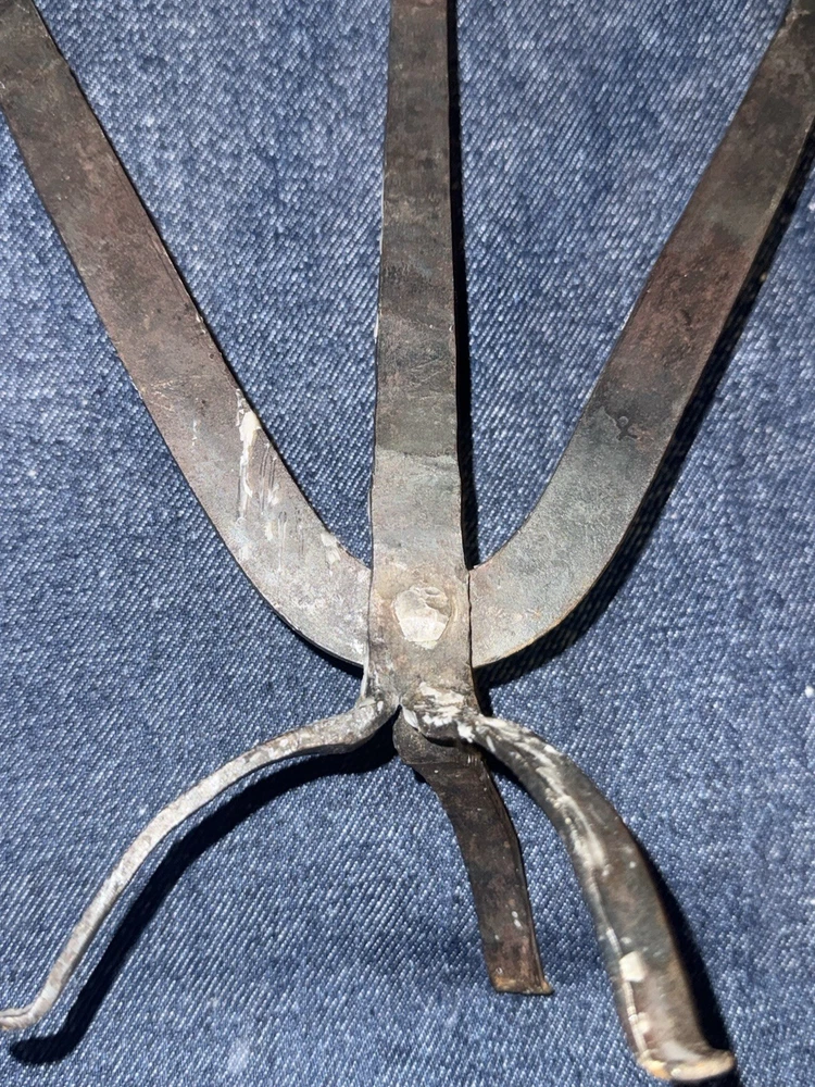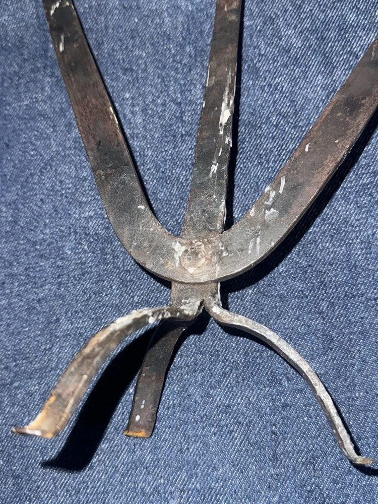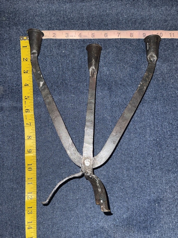 Vtg Brutalist Wrought Iron 3 Arm Tripod Base Candelabra Candle Holder Goth Art