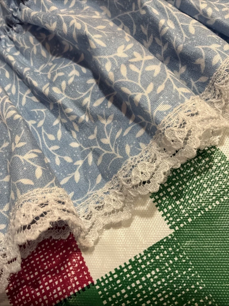 This vintage Bryan baby girls dress in size 18 months features a ruffled blue design with a bow, layered lace, and puffy sleeves. Made of polyester and cotton, the knee-length dress has a round neckline, short puff sleeves, and a button closure. Perfect for travel, parties, weddings, or formal occasions, this fit and flare style dress exudes a classic and retro theme with a touch of 80s flair. The lightweight and smocked fabric makes it comfortable for year-round wear, whether it's winter, summer, fall, or spring.