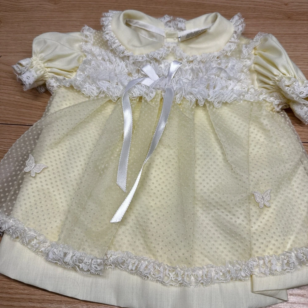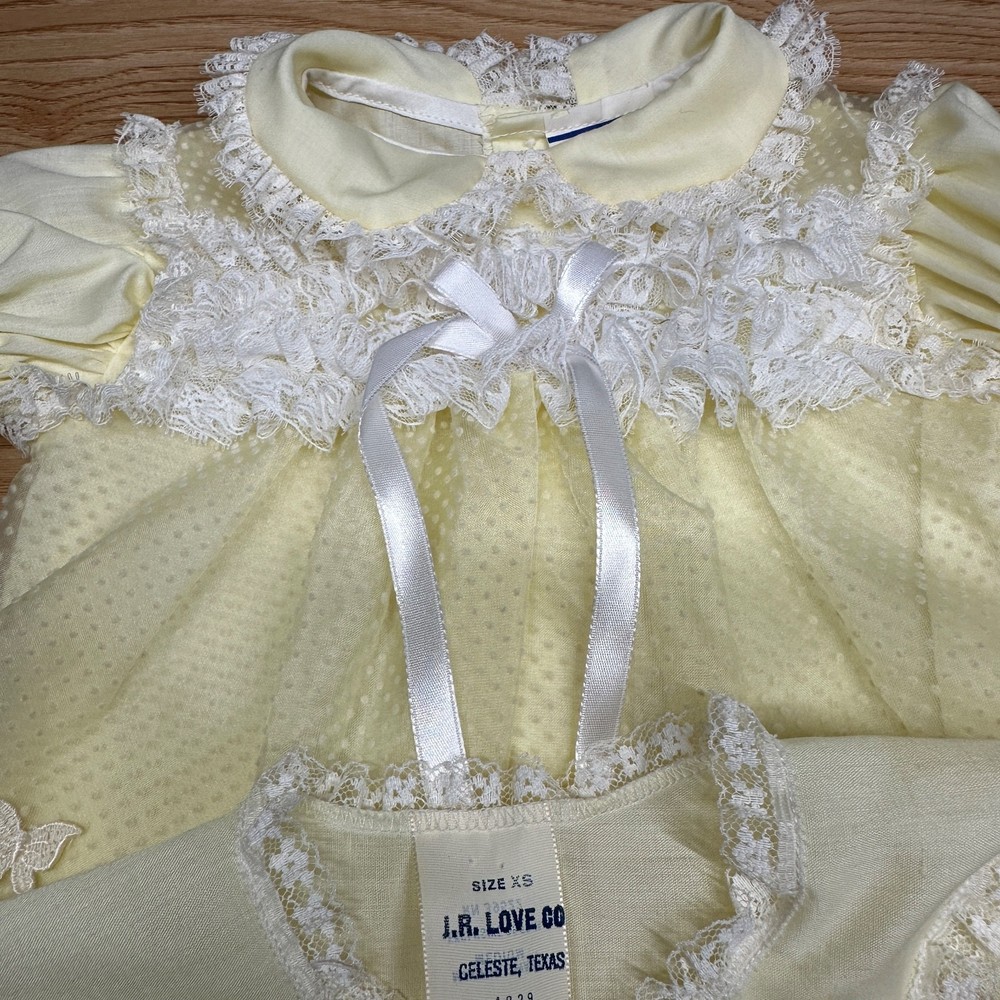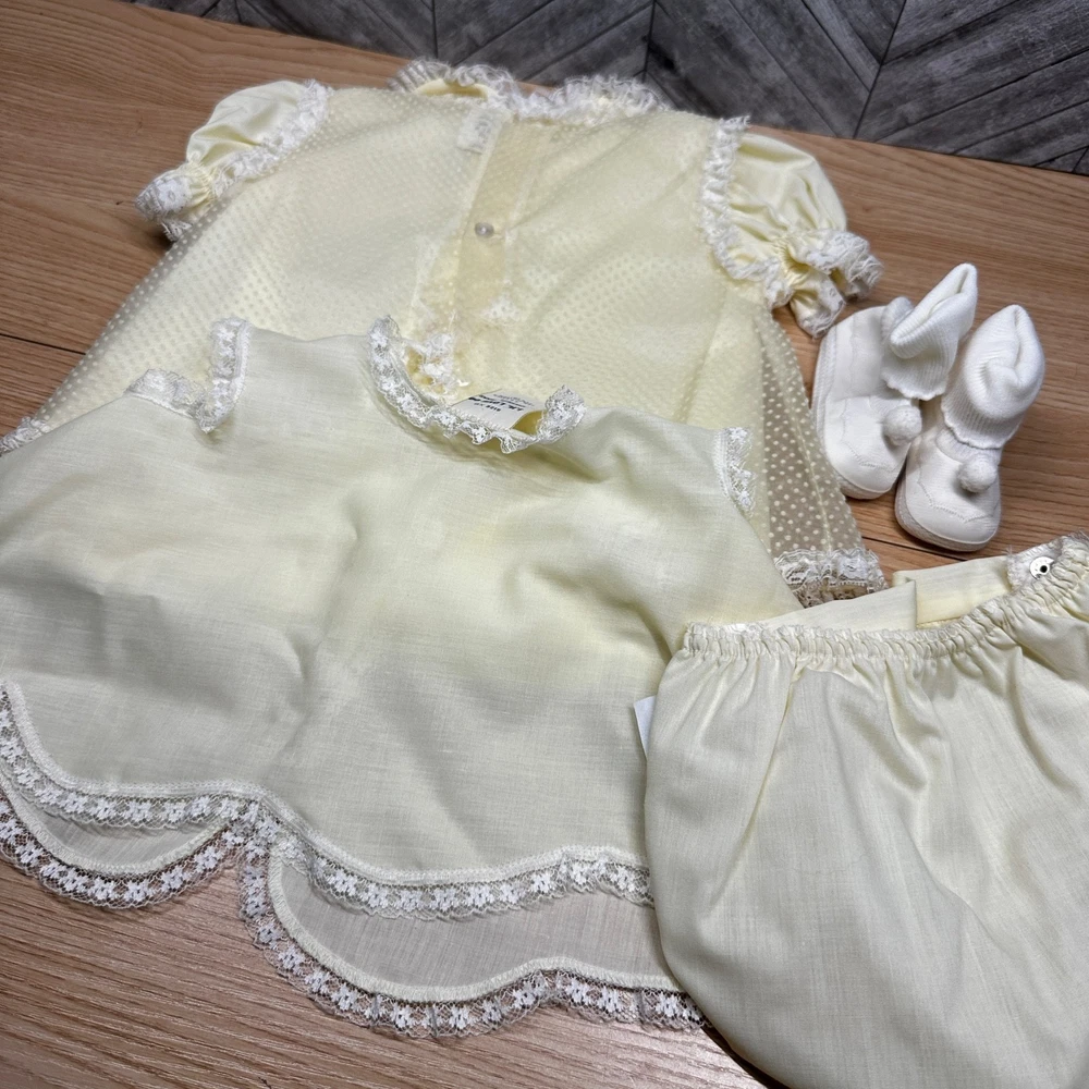 Item description: Vtg Bryan Baby Girls Dress 6M Ruffled Yellow Bow Layered Lace Puffy Sleeve 4 piece set (dress, bloomers, booties/socks, shawls) Pictures are part of the listing. Please review all of them before purchasing. Specific flaws will be pointed out and pictured, however if we miss anything, please message us about it and we can work together to resolve any issues. We work and ship out of a smoke free environment however we do resell from various sources. We wash all our clothing items but some odors might still be present. This will be noted in the description. Any non-clothing items are lightly cleaned but sold in "as found" condition. We s hip all items within 1 business day after payment is cleared. If you purchase on a Saturday after 12pm, your item will be shipped on Monday morning as our USPS is not open on Sundays. If you purchase on a Sunday or Holiday, your item will be shipped the day after the holiday. We happily accept returns within 30 days of purchase. Items must be returned in the condition they were received. Shipping both ways is the buyers' responsibility as we do NOT offer free returns. We are an EVERY THING STORE and sell all kinds of items. Please check out our store! We can combine shipping! Thanks for stopping by! We hope you find what you're looking for.