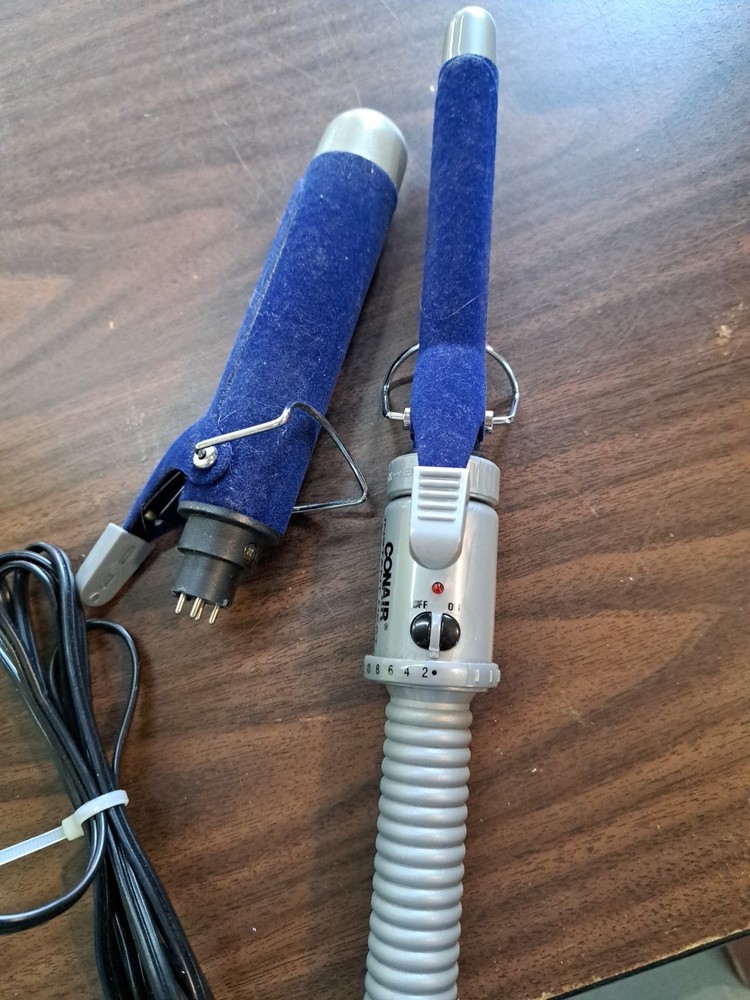Vtg CONAIR Instant Heat Blue Flocked Curling Iron Velvet 2 Size Barrels Tested!.