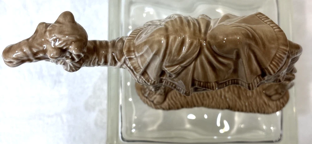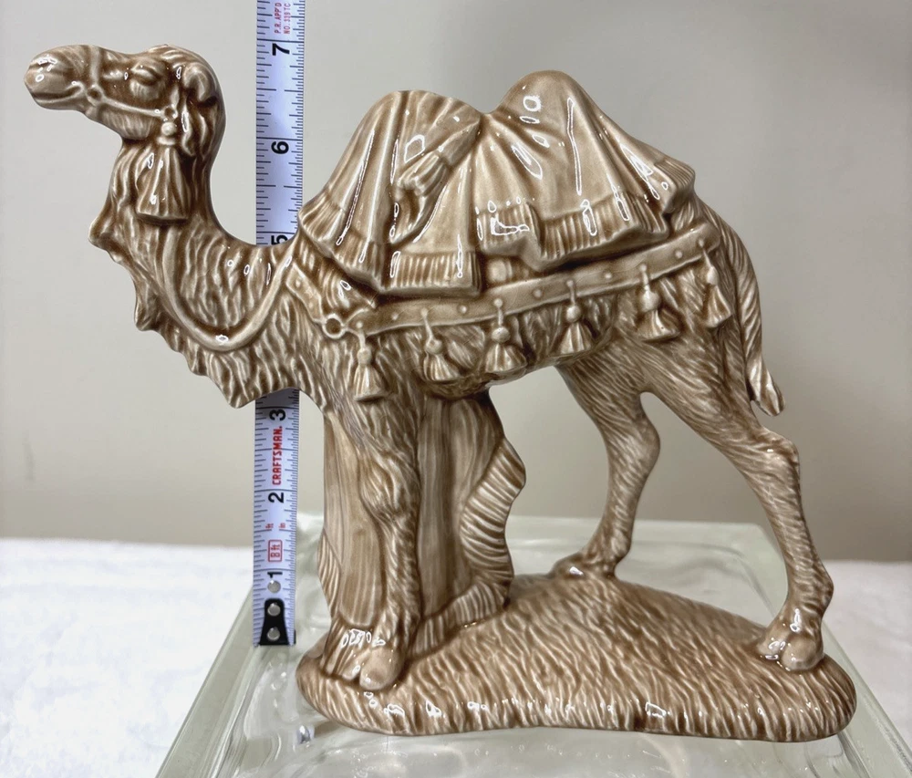 This vintage ceramic Holland Mold Camel Nativity Figurine is a beautifully hand-painted piece that stands at 7 inches tall and 8 inches wide, making it a large and detailed addition to any Christmas Nativity scene collection. Manufactured in 1970 in the United States, this original figurine features a Light brown camel character crafted from double-fired ceramic. With its vintage style and handmade quality, this unique item is a perfect replacement or unique accent for your holiday decor. This is pre-owned; please look at all pics as they are part of description.
