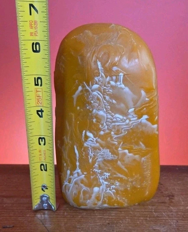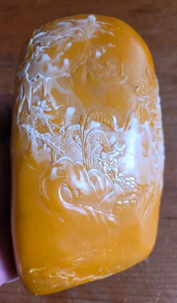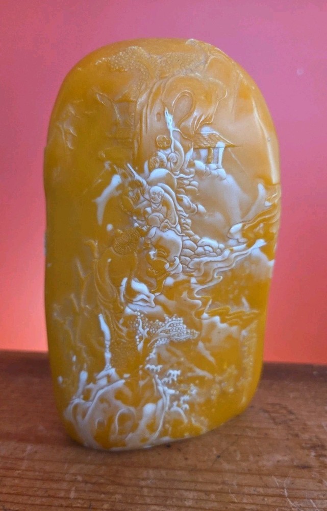 Very nice carved agate stone with alot of natural cloudy white incorporated into it, see all pictures of scholars carvings came from an Estate of a Chinese calligraphy master will be listing a lot of he's antique supplies in the coming weeks some very rare ink stones of many sizes and colors thanks for Looking Reach out With any questions you might have Lot 153