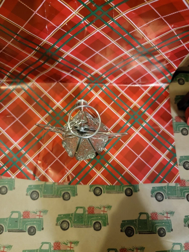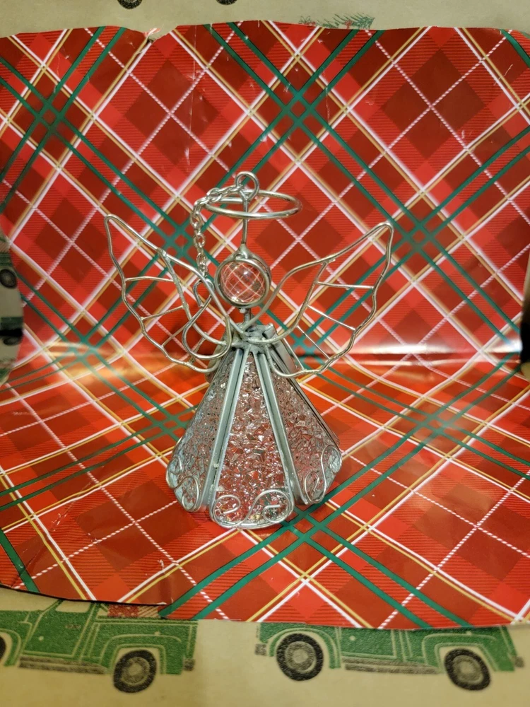 Celebrate the holiday season with this vintage clear stainless glass angel Christmas ornament. Crafted in the Arts & Crafts Movement style, this handmade ornament features a playful horn and is perfect for any angel enthusiast. Measuring 4 inches in height and 3 inches in width, this small ornament is sure to bring joy to any Christmas tree. The ornament is made of fused glass and showcases a beautiful all-over pattern. The clear color and intricate design make it a perfect addition to any ornament collection. This piece is ideal for those who love angels and are looking for a unique ornament to cherish.
