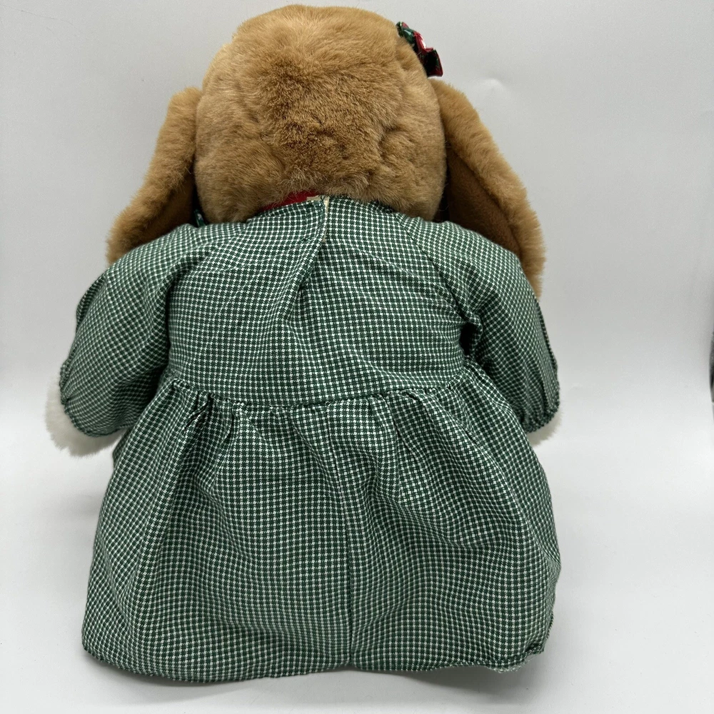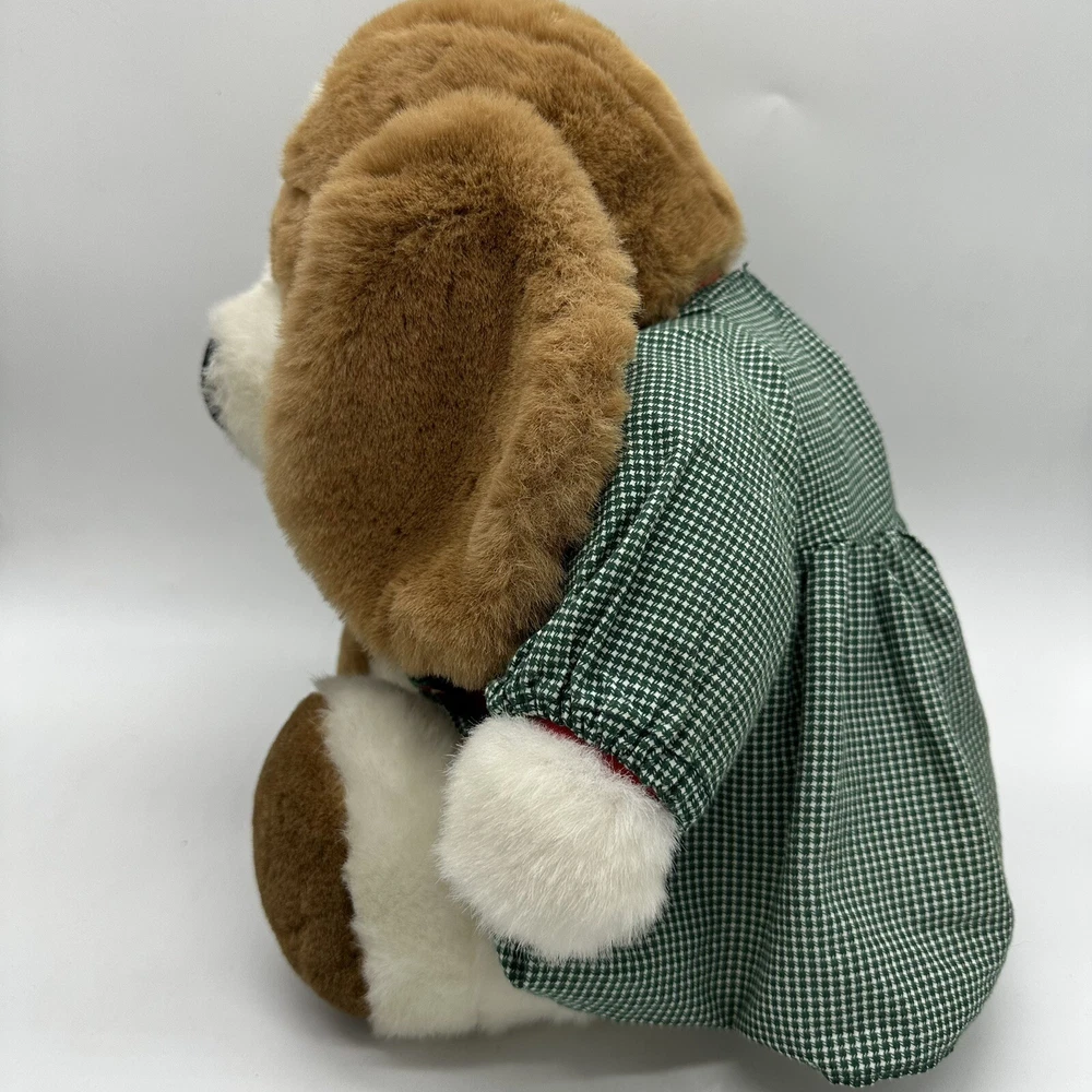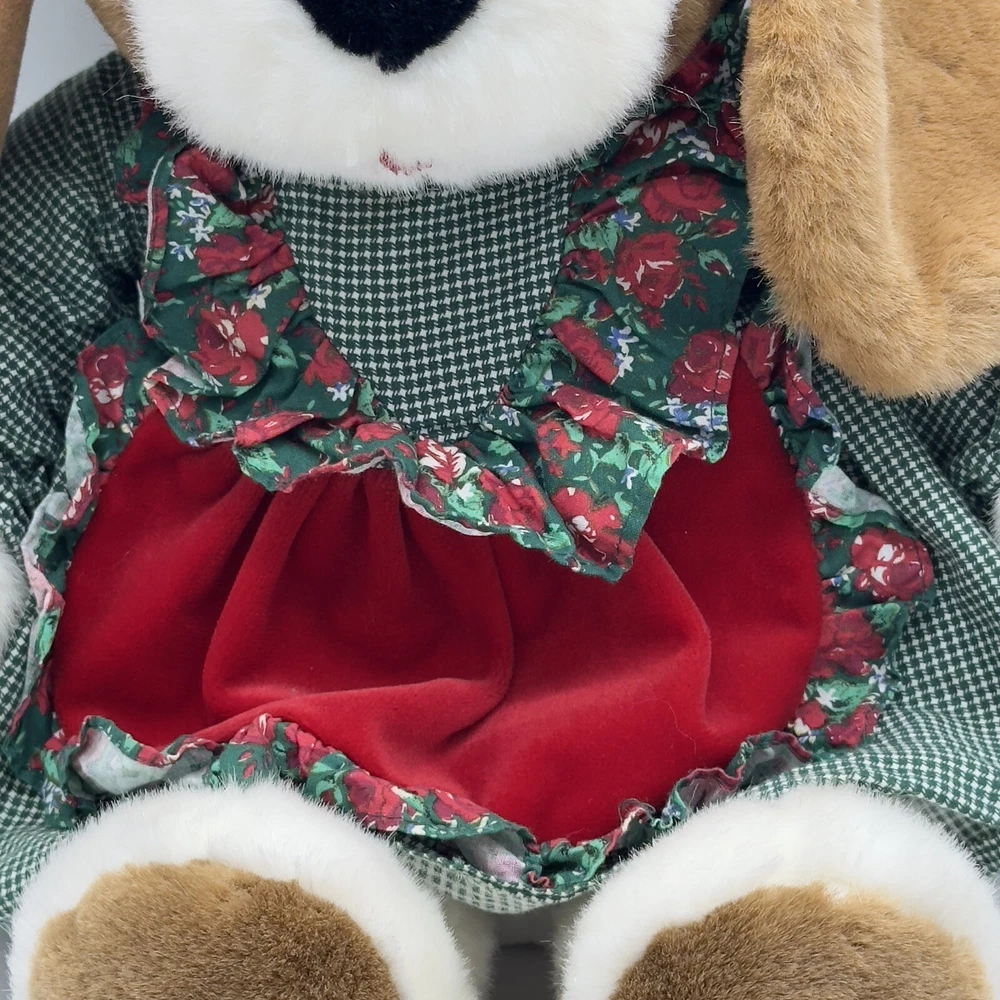 Vtg Commonwealth Brown Dog Plush Dress Christmas Stuffed Animal Toy Floppy Ears There is a water stain on her behind but it is covered by the dress. Otherwise, no rips or other stains.