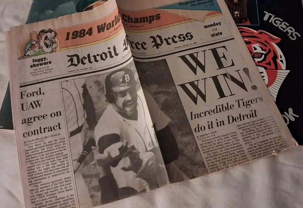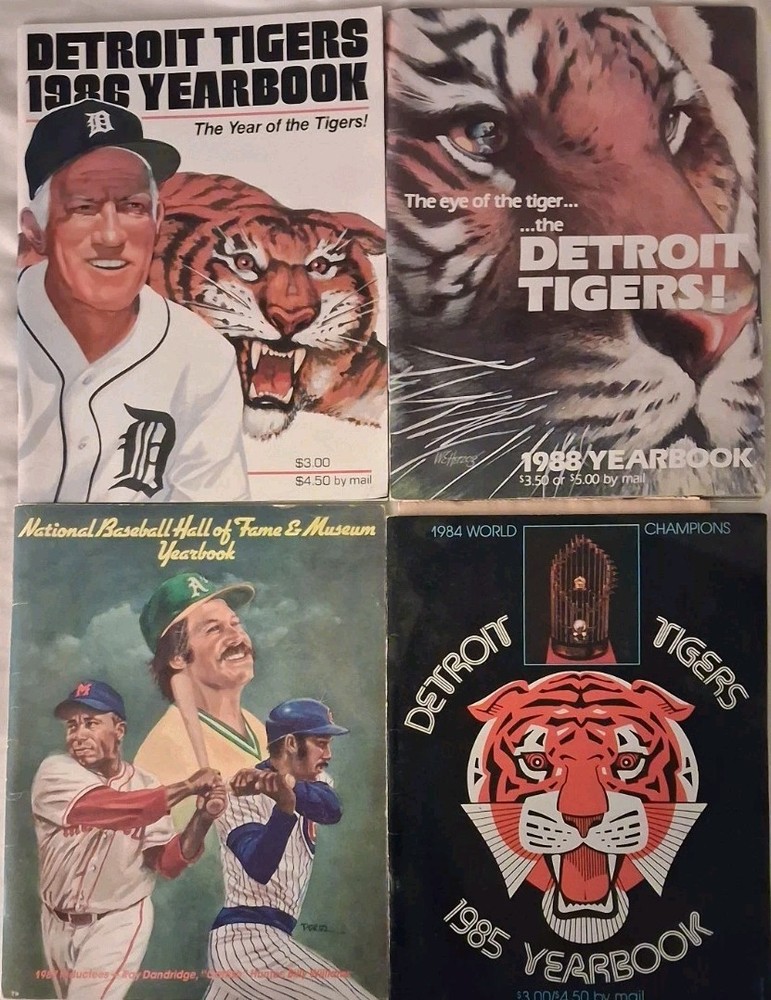 This pre-owned set includes four classic baseball yearbooks plus a bonus 1984 Detroit Free Press Tigers championship article, perfect for collectors, fans, and gift-giving. Each book shows light, normal handling/storage wear consistent with age, but no rips, no writing, and no missing pages. The newspaper article shows some expected aging/yellowing from storage. You will receive the exact books shown • 1985 Detroit Tigers Yearbook (1984 World Champions edition) • 1986 Detroit Tigers Yearbook (Sparky Anderson cover) • 1988 Detroit Tigers Yearbook (Eye of the Tiger cover) • 1987 National Baseball Hall of Fame & Museum Yearbook – featuring Ray Dandridge, Catfish Hunter, Billy Williams • BONUS: 1984 Detroit Free Press “WE WIN!” Tigers World Series article ✔ Condition • Pre-owned vintage condition • Light surface/edge wear consistent with age & storage • No rips • No missing pages • Newspaper insert shows yellowing from age (normal) These books capture the Tigers’ golden era, including the celebrated 1984 World Championship, iconic artwork, roster history, and heavy nostalgia for Detroit baseball fans. A great collectible set for display, sports rooms, or for completing a Tigers memorabilia collection. 📦 Ships quickly and carefully by the next business day. --- 🗝 Detroit Tigers • MLB history • baseball nostalgia • sports collectibles • Tiger Stadium • 1980s baseball • Alan Trammell • Lou Whitaker • Sparky Anderson • 1984 Champions • vintage yearbooks • memorabilia lot • sports room décor • collector gift --- 🔎 #DetroitTigers #MLB #BaseballHistory #SportsCollectibles #TigersYearbook #1980sBaseball #DetroitSports #VintageBaseball