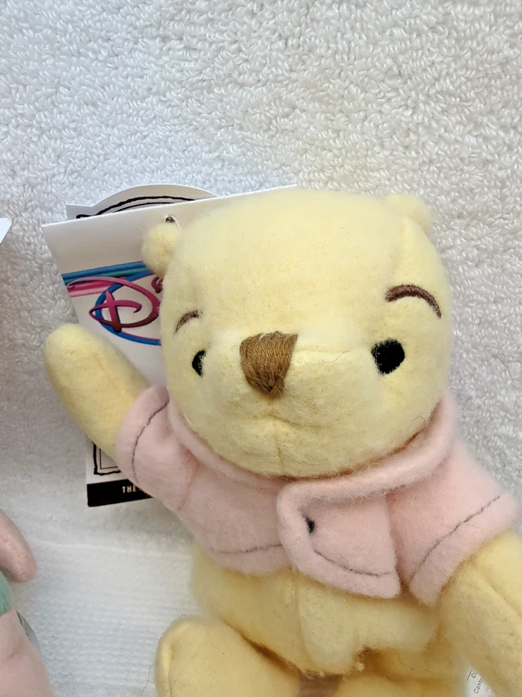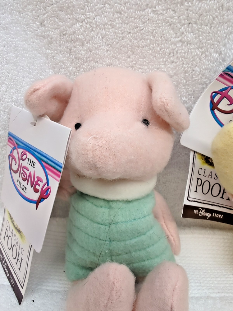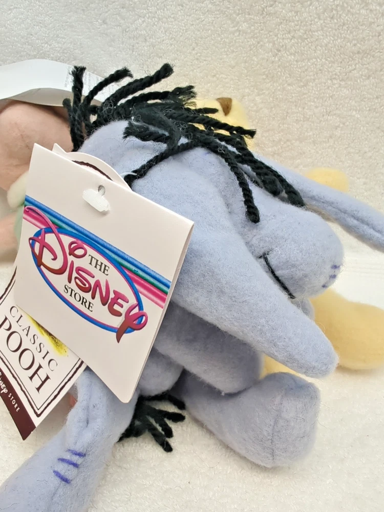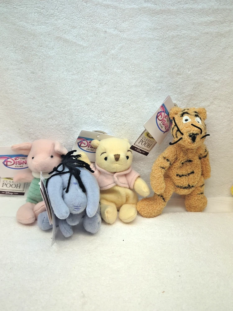 This product is a lot of 4 vintage Disney Store exclusive plushies featuring characters from the Winnie the Pooh franchise. These plush toys are brand new with tags and make for a charming addition to any Disney collector's inventory. Perfect for fans of classic Disney characters and those nostalgic for the beloved Pooh and Friends story.