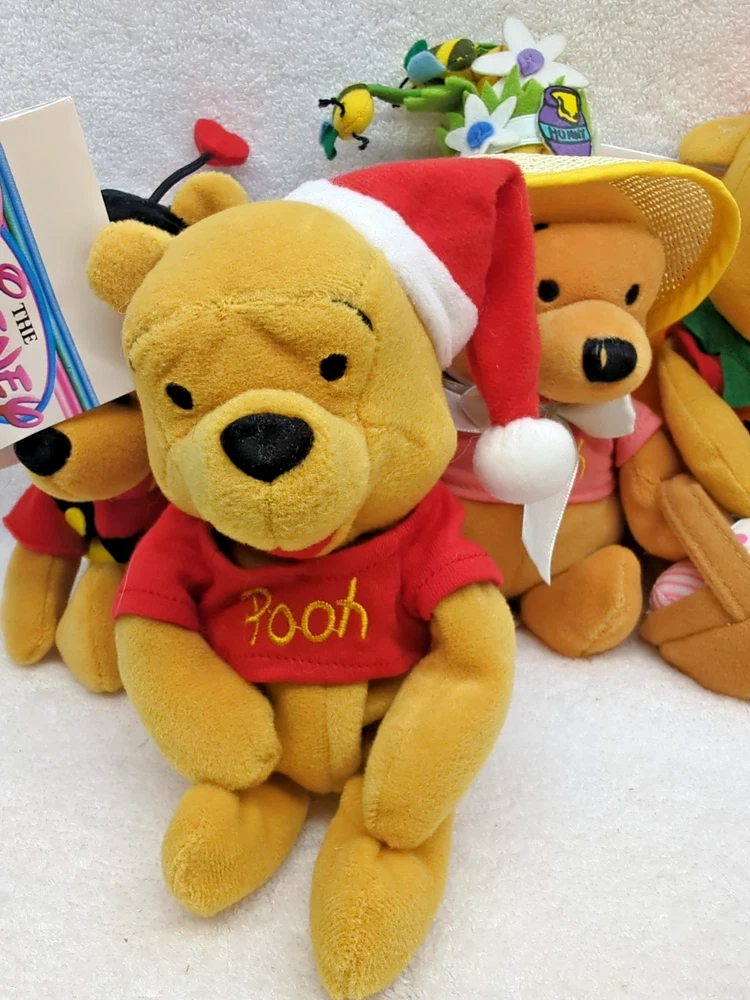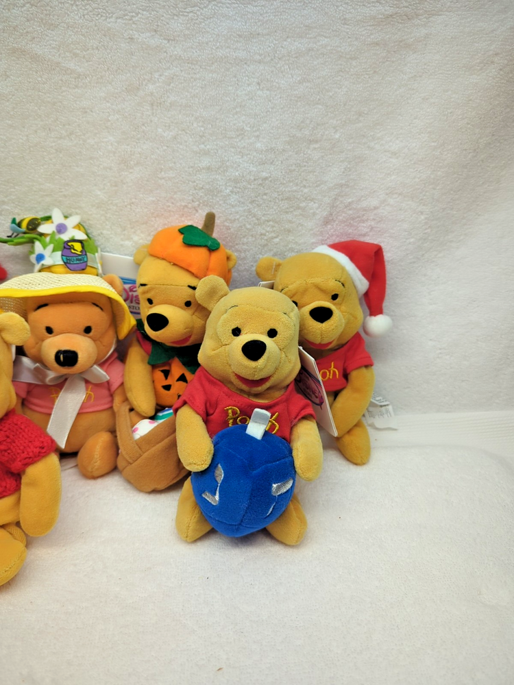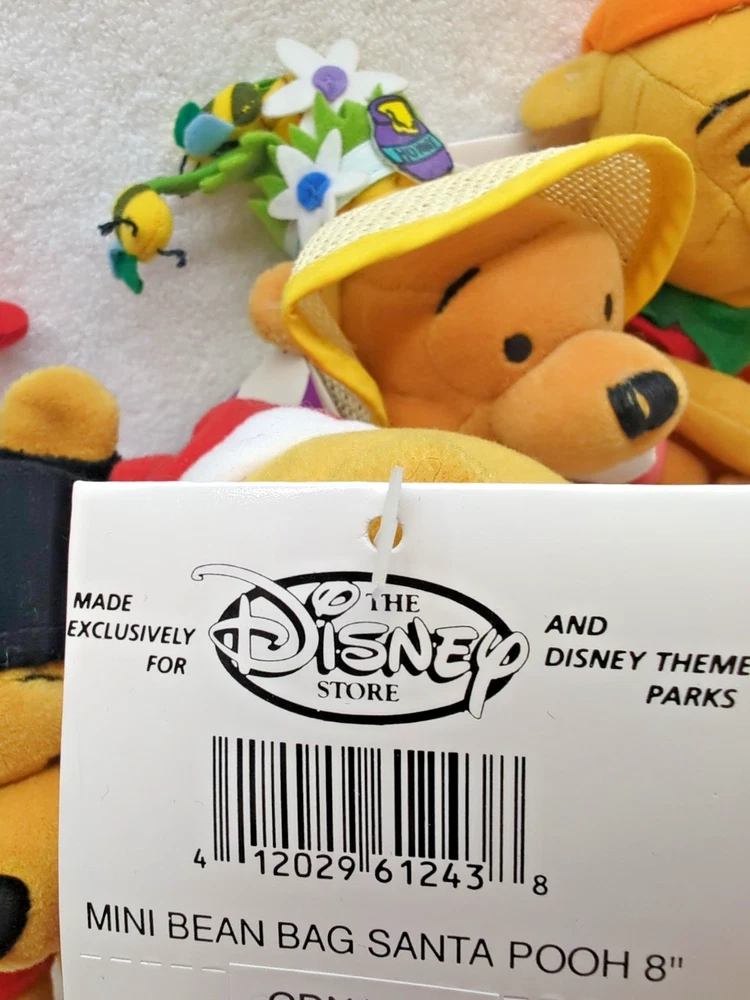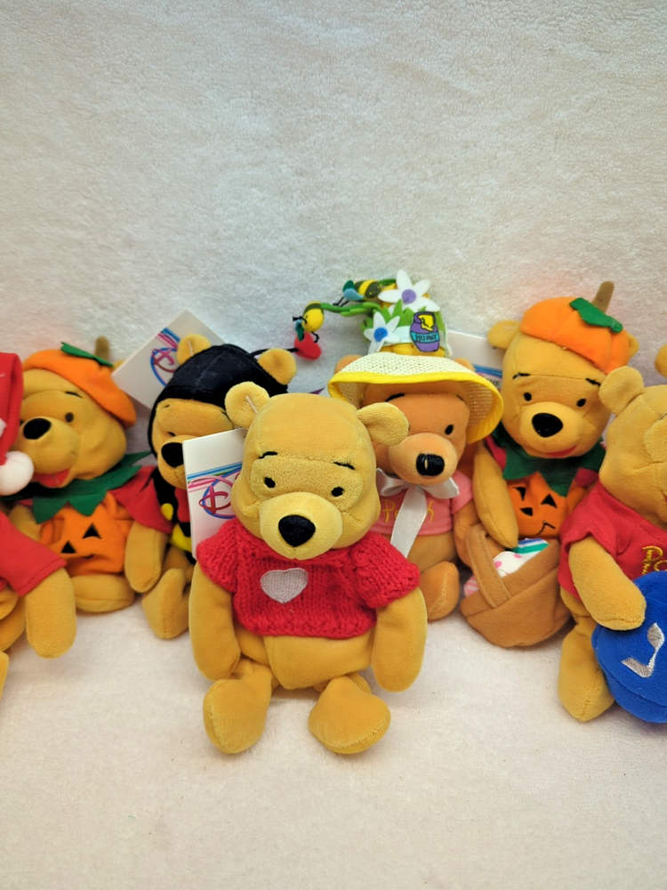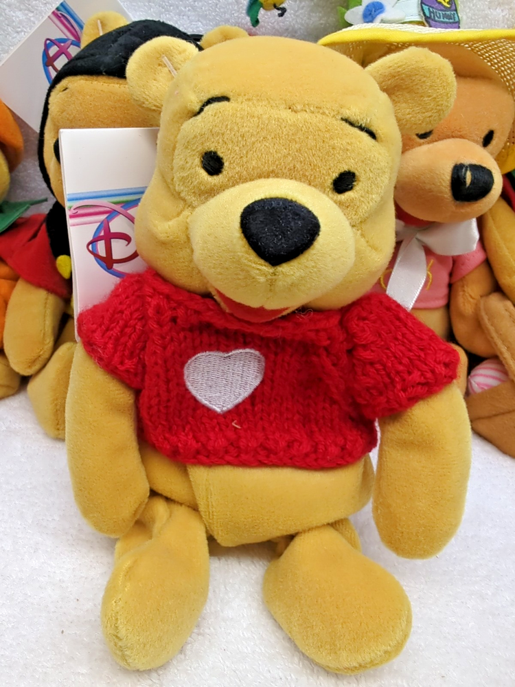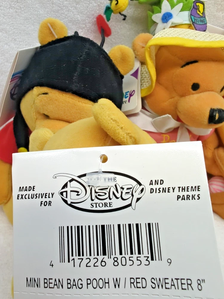 This lot of 9 brand new vintage Disney Store exclusive Winnie the Pooh plush toys are a charming addition to any Disney collection. Each plushie features a different character or scene from the beloved Winnie the Pooh franchise, making them a cute and nostalgic addition to any Disney fan's display. With their original tags still intact, these plush toys are sure to delight collectors and fans alike with their adorable designs and high-quality construction.