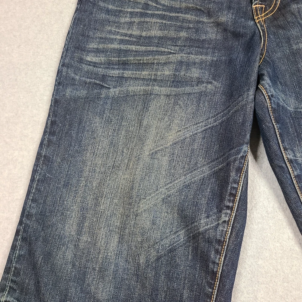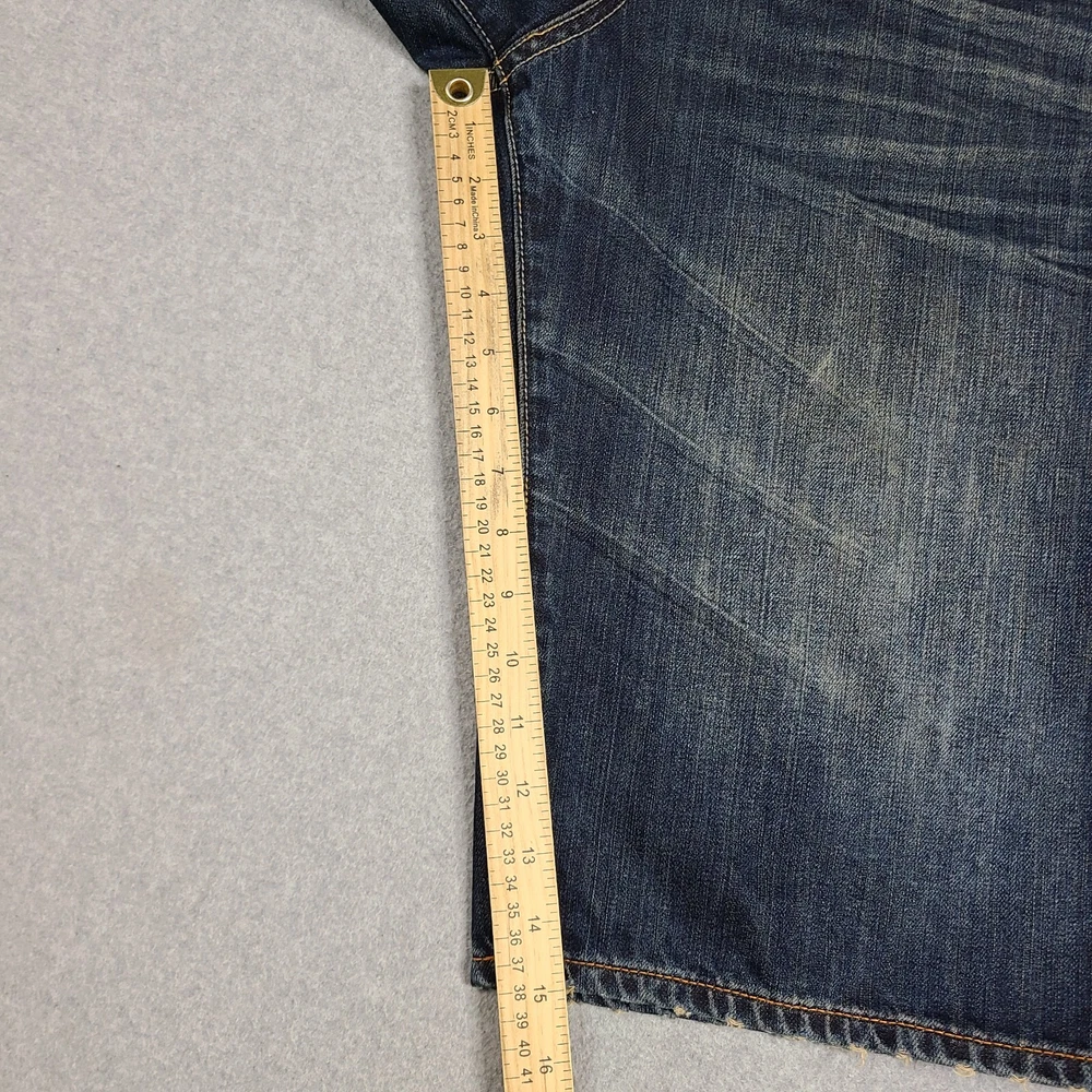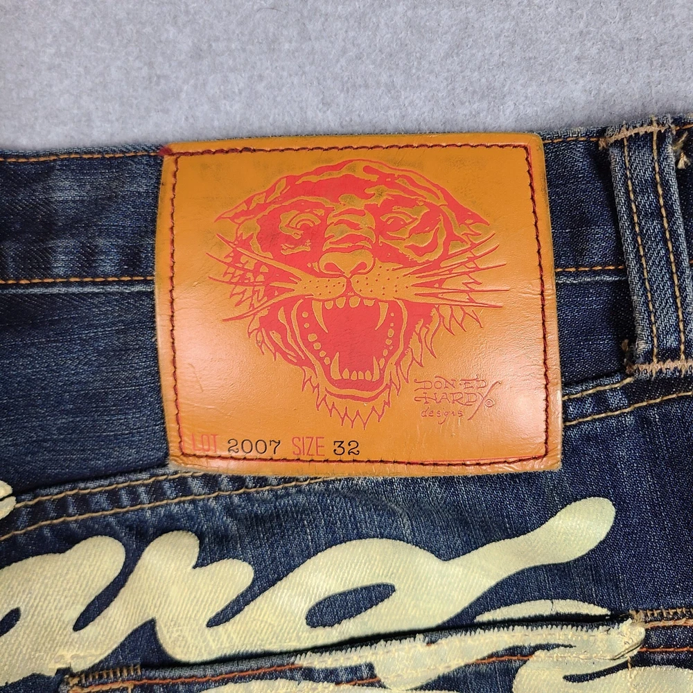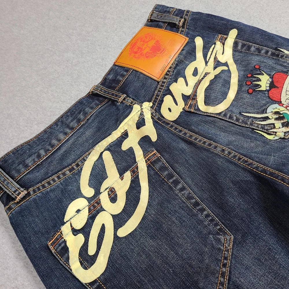 Some small holes in the back. Please see ALL pictures before purchasing. Get ready to embrace the vintage vibe with these Ed Hardy Y2K New York City embroidered jean shorts. The solid blue color and distressed denim fabric make them perfect for travel, casual wear, or workwear. These Bermuda-style shorts come with a flat front and a button closure, making them easy to wear and comfortable. The relaxed fit and 5-pocket design of these shorts make them perfect for carrying your essentials while on the go. The embroidered logo adds a unique touch to these shorts, making them stand out from the rest. These shorts are machine washable and easy to care for, making them a practical addition to your wardrobe.