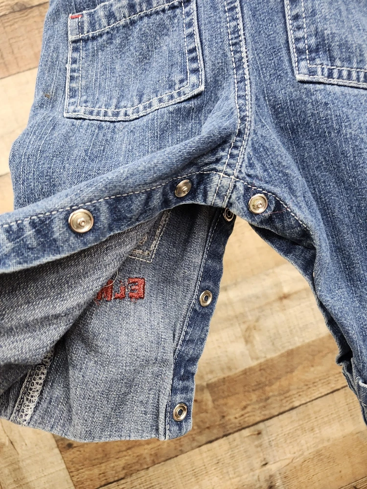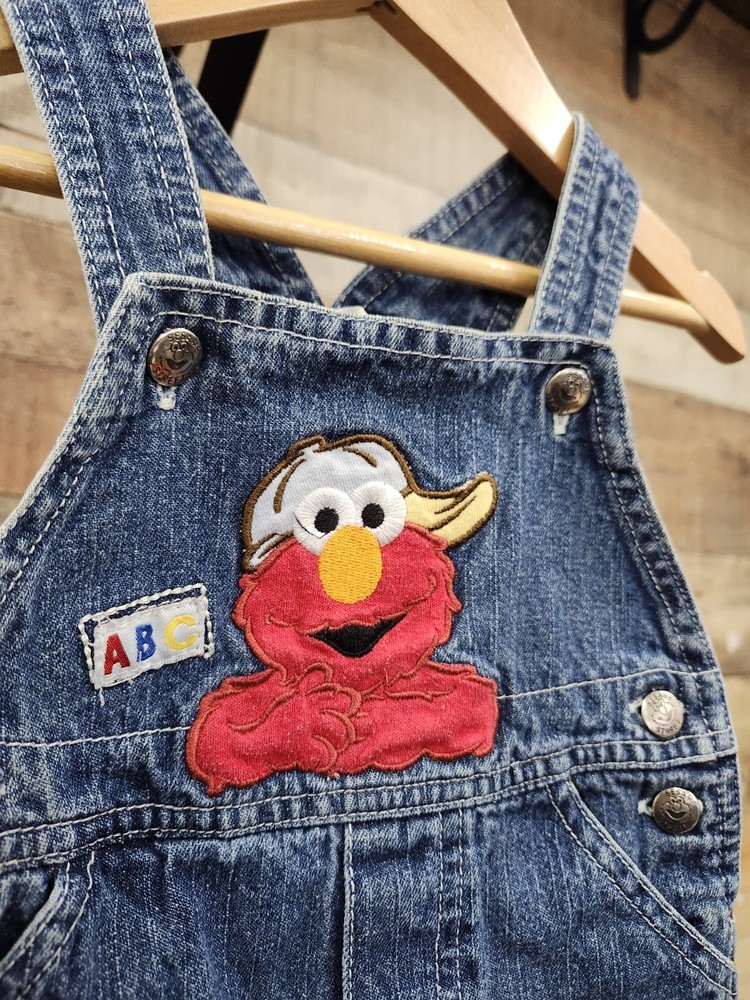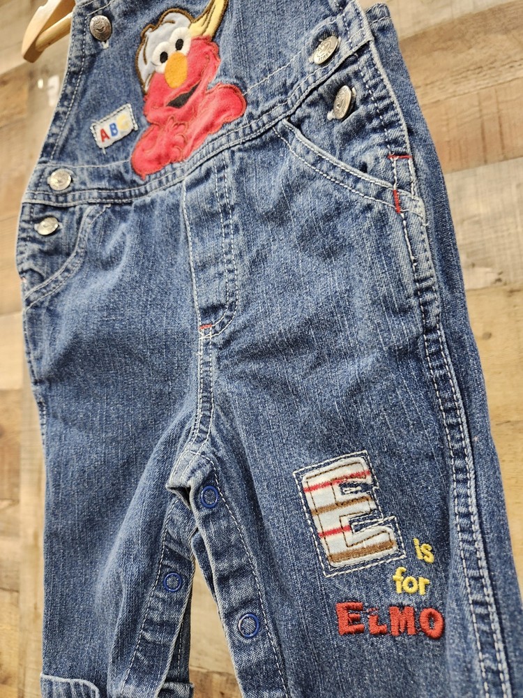 Vtg Elmo Sesame Street Denim Overalls Sz 6-9 Months Embroidered Great Condition