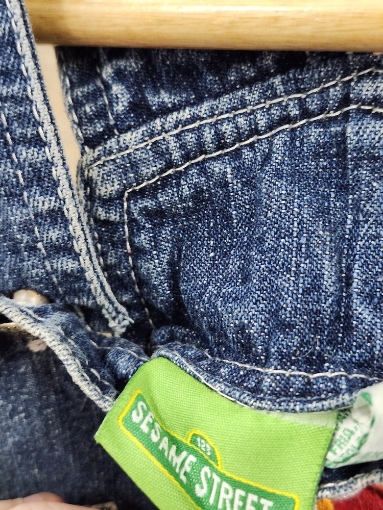 Occasion: Casual Accents: Embroidered Type: One-Piece Garment Care: Machine Washable Neckline: Square Neck Closure: Snap Pattern: Solid Material: Cotton Department: Unisex Baby & Toddler Country of Origin: Bangladesh Style: Overall Sleeve Length: Sleeveless Performance/Activity: Walking, School Features: Adjustable Strap, Pockets, Easy Care Fabric Type: Denim Theme: 90s, Cartoon, TV & Movie Characters Color: Blue Brand: Sesame Street Vintage: Yes Size: 6-9 Months Number of Pieces: 1 Piece Season: Spring, Summer, Fall, Winter