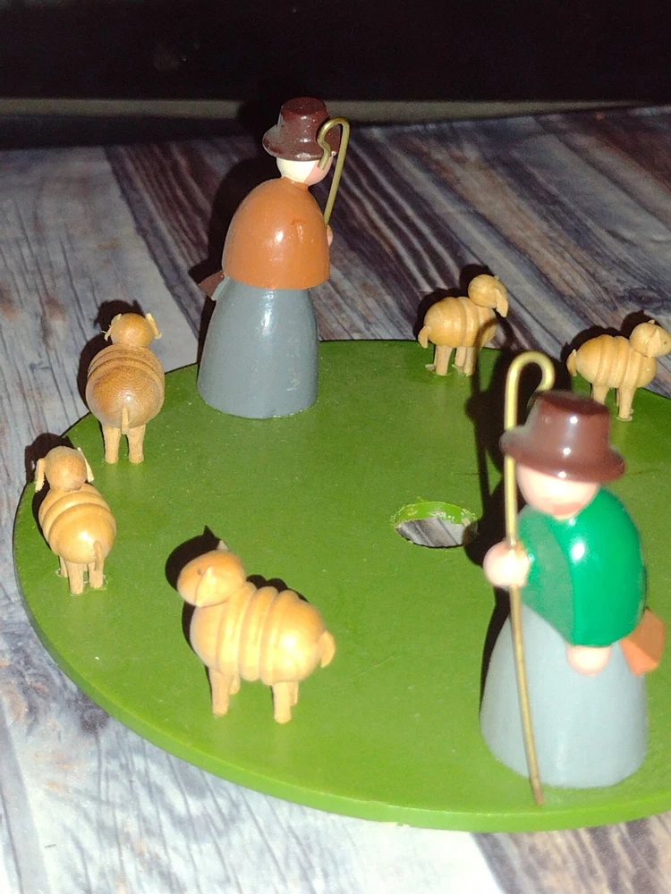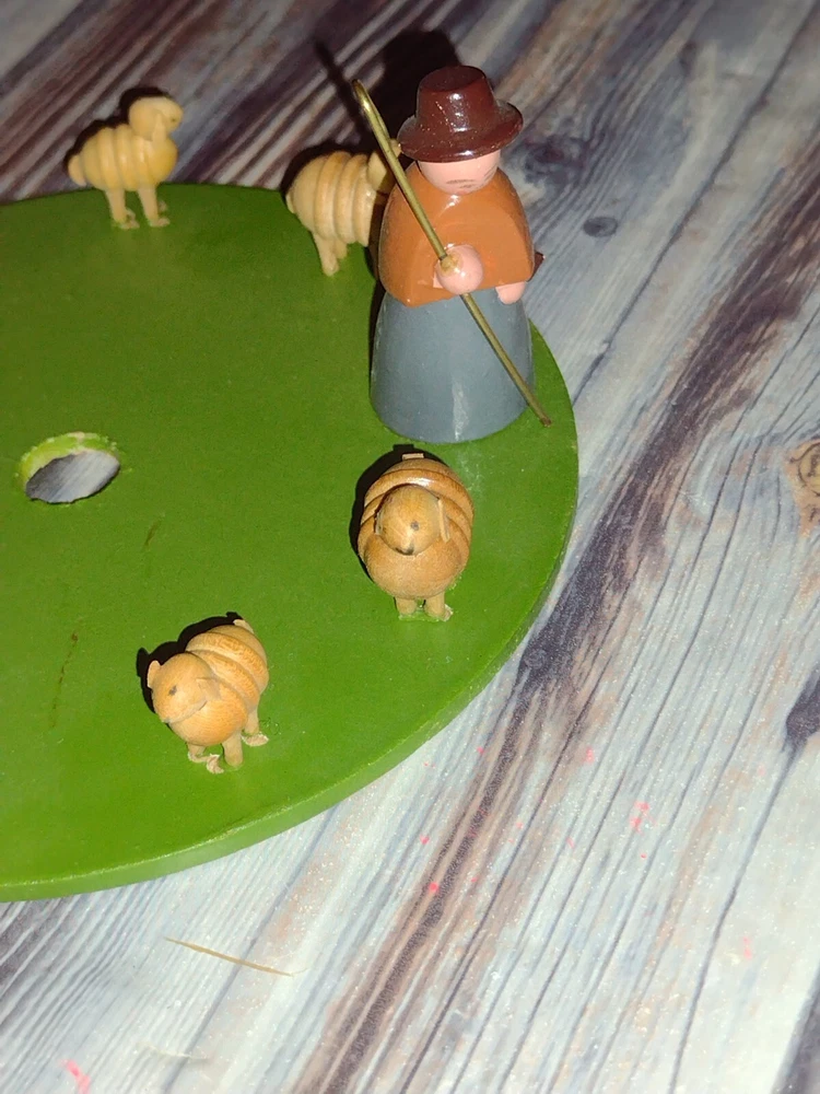 Pre-owned condition normal wear no major damage or flaws. Sticker not included. Paint is vibrant I do not clean vintage items I leave that to the discretion of the buyer 2nd tier only sheep /lambs has been repaired by previous owner this is common due to age of item and glue used. Excellent condition for age of item made in Germany democratic Republic. This is the top tier. Sold as shown no exchanges or returns. Please see photos for condition of items. Please message me if you have any questions.Thank you for visiting my store.