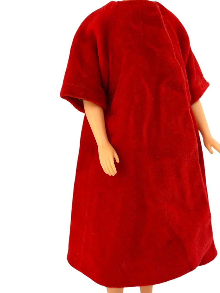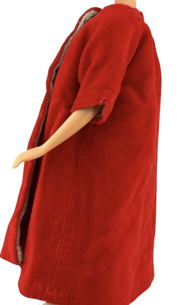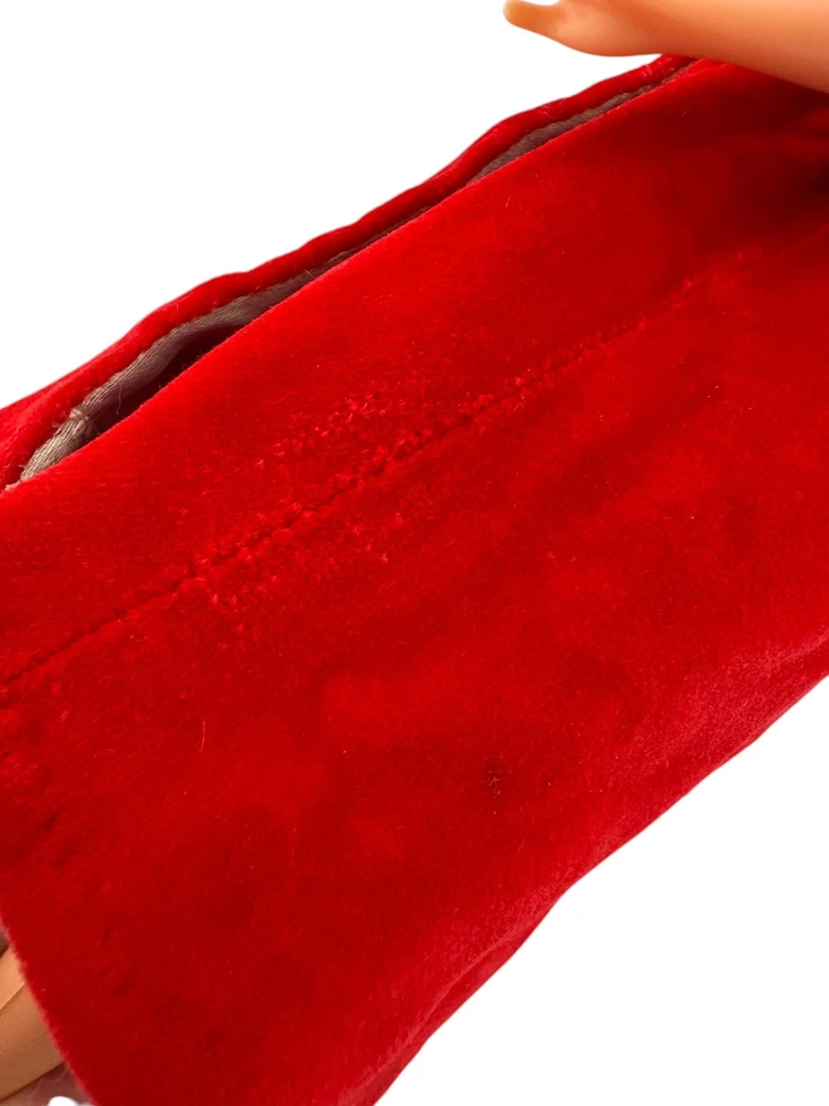 Vtg Fashion Doll Red Velvet Flare Coat Cloak Wrap Wide Sleeves Silky Lining Snap An area of pilled or scratched velvet. A dark stain. Metal snap. See pics.