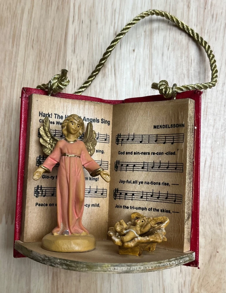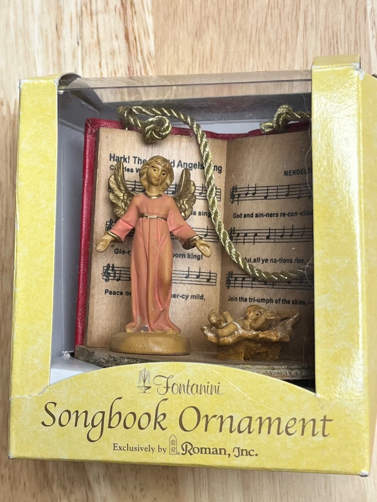 Celebrate the holiday season with this beautiful Fontanini angel and baby Jesus manger songbook ornament. Made in China in 2004, this small and colorful ornament is perfect for adding a touch of angelic charm to your Christmas tree. The ornament features intricate details and is made by the renowned brand Fontanini, ensuring its quality and durability. Whether you're a collector of angel ornaments or simply looking for a unique Christmas decoration, this piece is sure to bring joy and wonder to your home. With its multicolor design and angelic theme, it's a wonderful addition to any holiday decor. Add this stunning Fontanini angel and baby Jesus manger songbook ornament to your collection today!