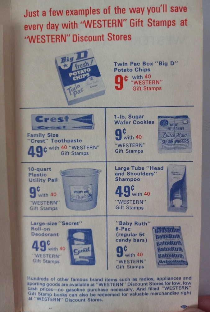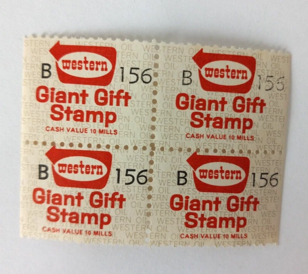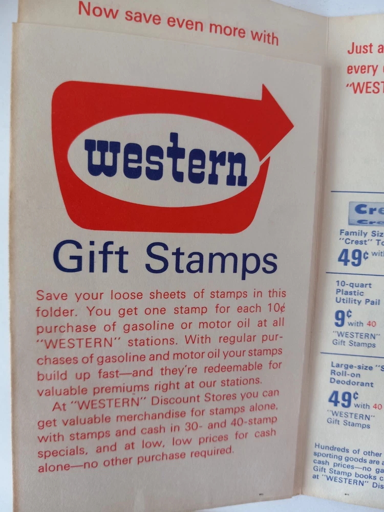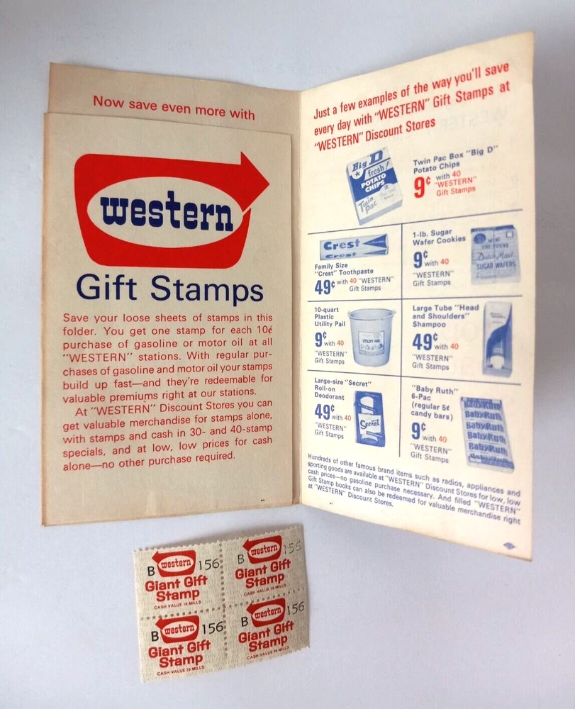 Western Discount Stores Gas Stations Gift Stamps. 4 stamps and folder.