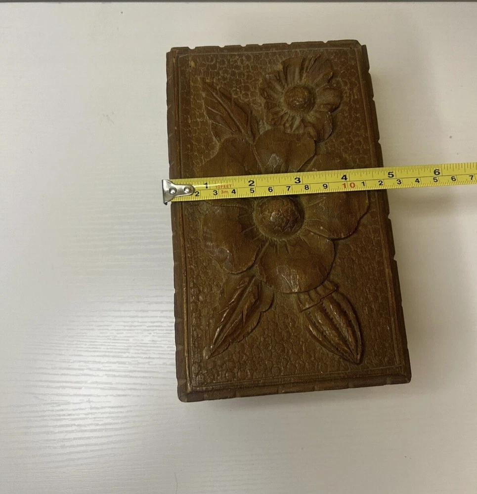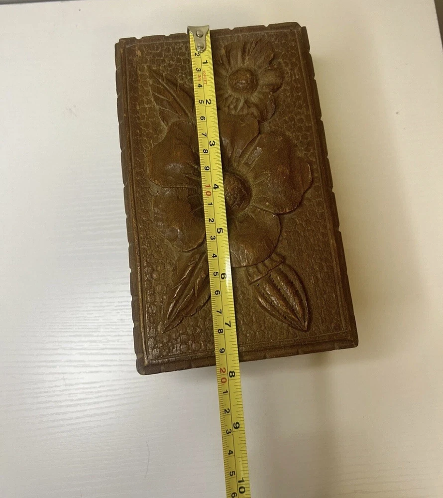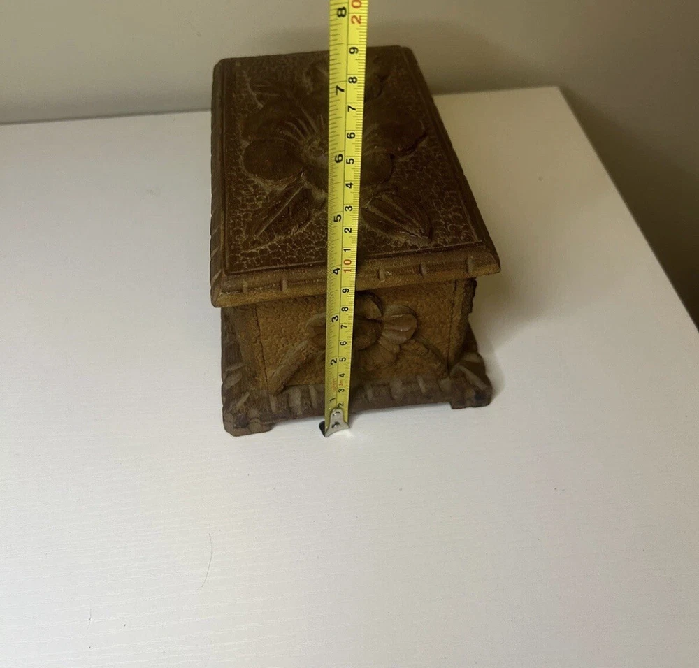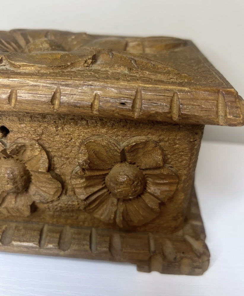 Vtg Hand Carved Wood Jewelry Box Keepsake Chest Hinged Hidden Key Mexico Open