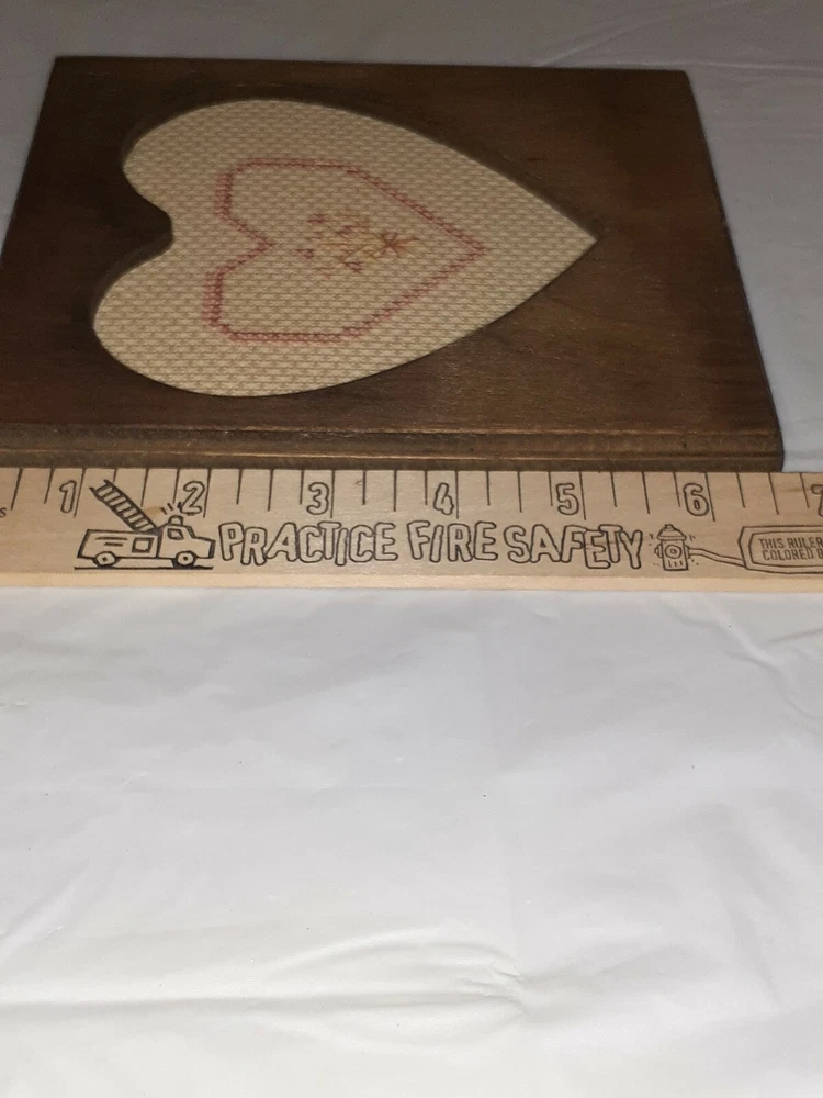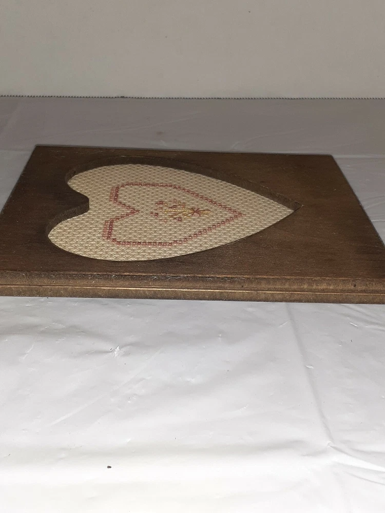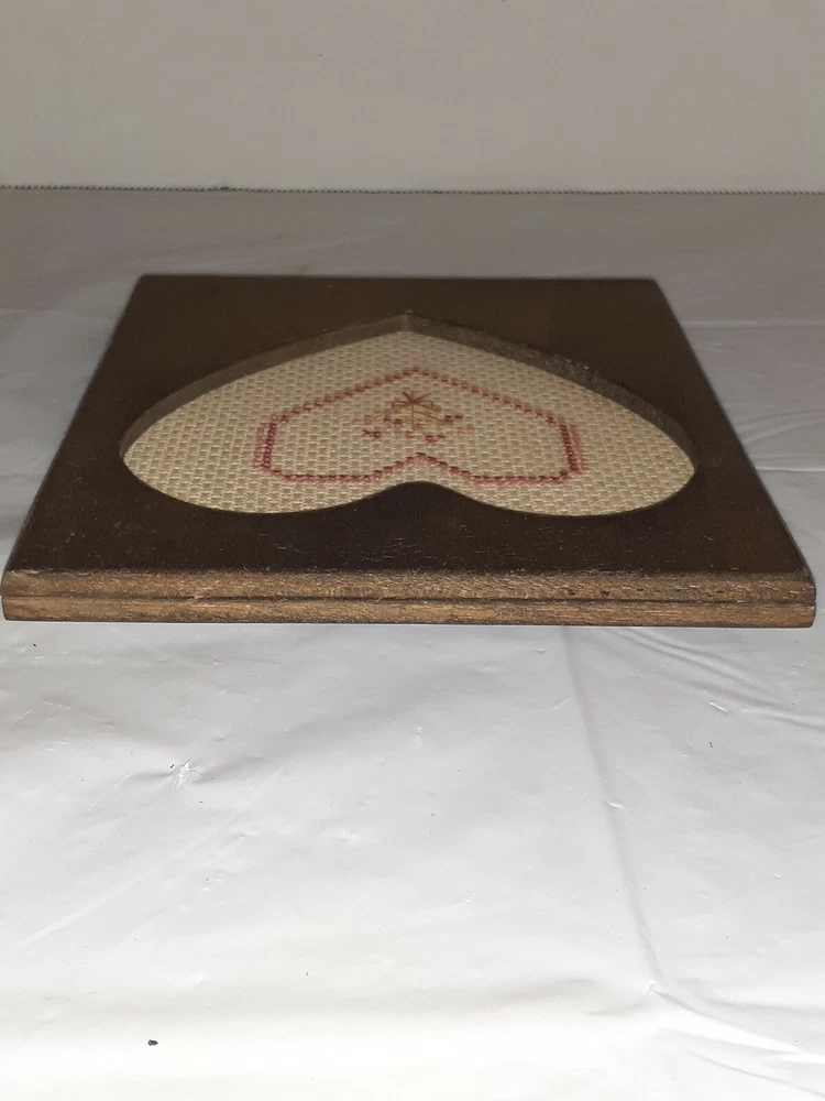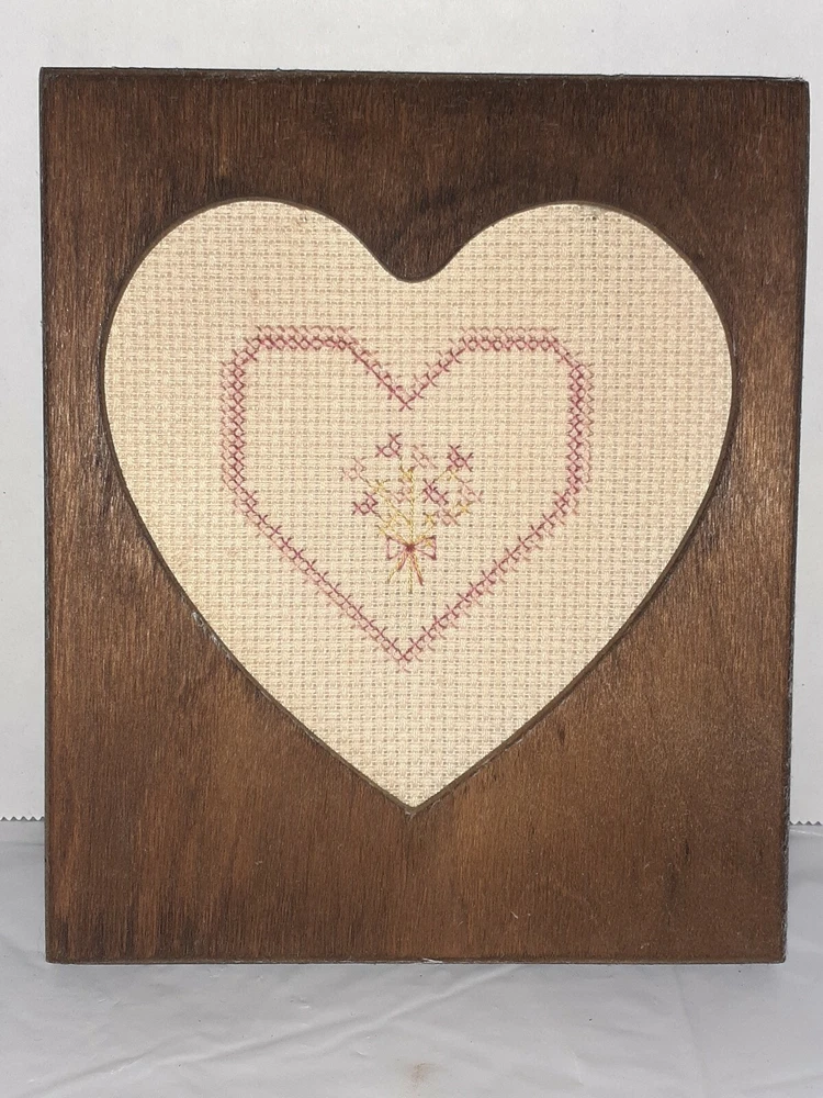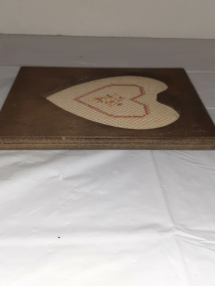 Vtg Handmade Rustic Wood Heart Frame Cross Stitch Heart. Condition is Used. Charmingly imperfect! Cross stitch framing is a little left of center and hanger is not mounted straight on back. Still a lovely gem!