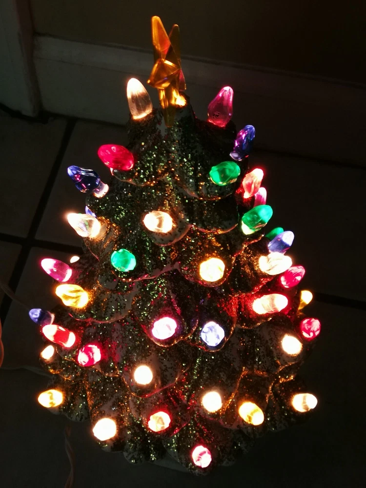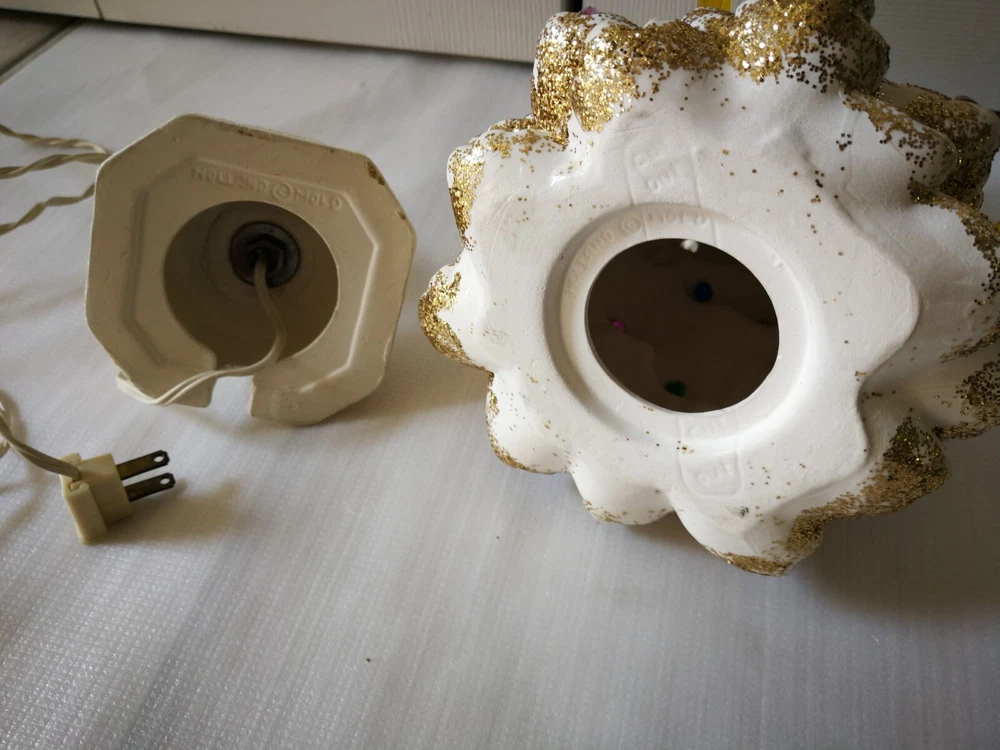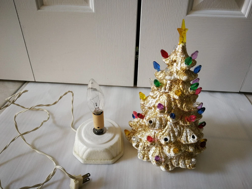 Vtg Holland Mold 11.5" White Ceramic Gold glitter Light Up Christmas Tree