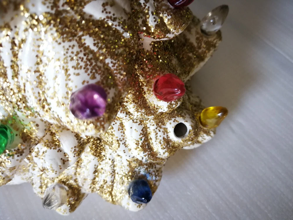 HomeVtg Holland Mold 11.5" White Ceramic Gold glitter Light Up Christmas Tree