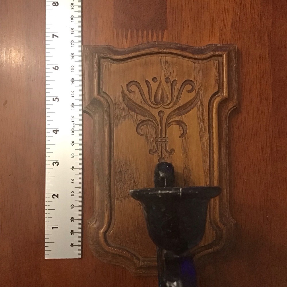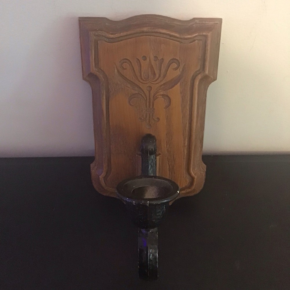 Vtg Homco Faux Wood Wall Sconce Candle Holder Colonial Style