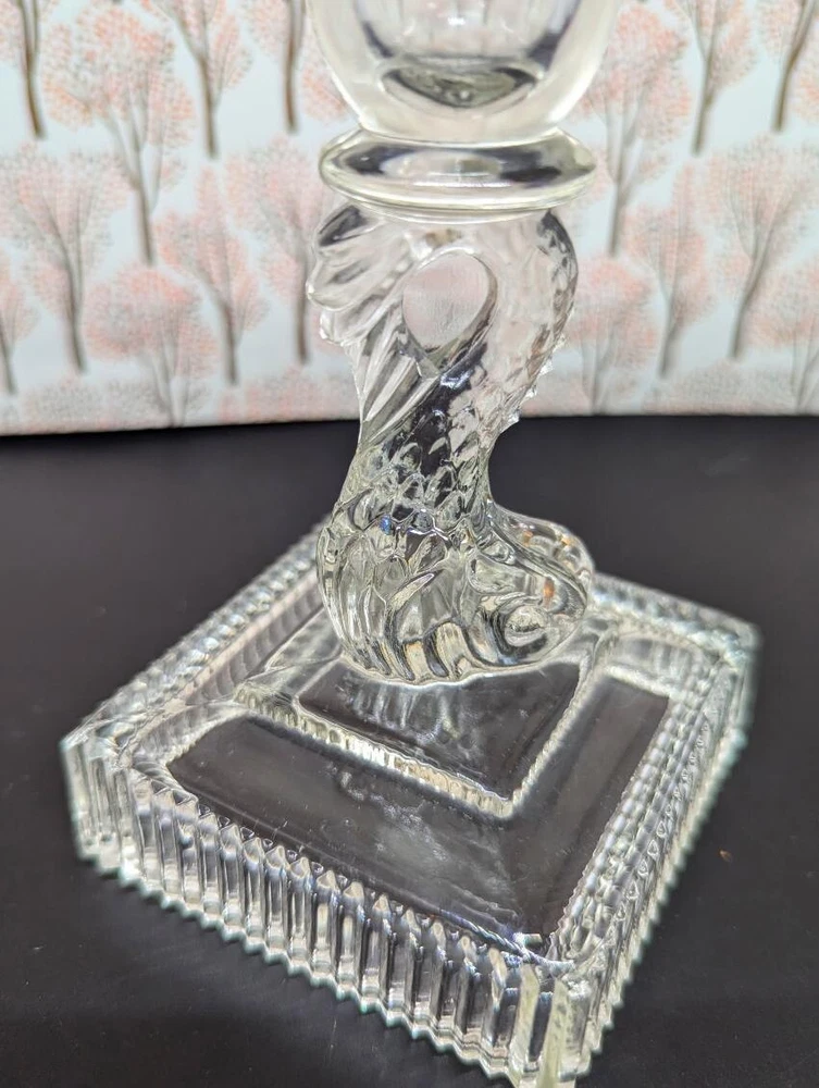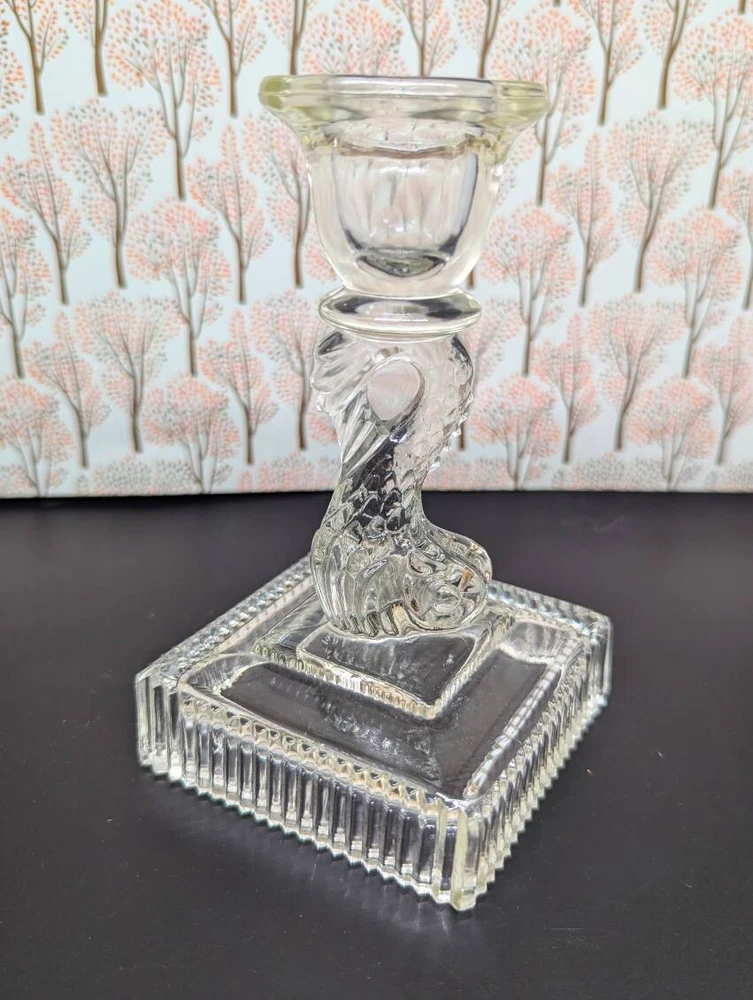 Vtg Imperial Glass Clear 779 Dolphin Koi Fish Candlestick Candle Holder 5” EUC. Condition is Used. Shipped with USPS Ground Advantage.
