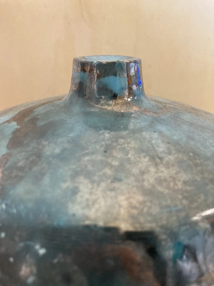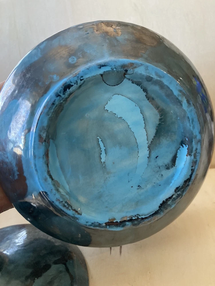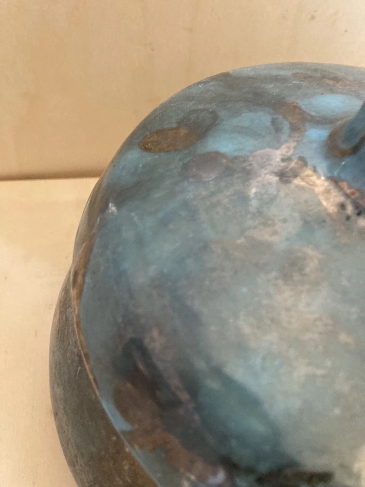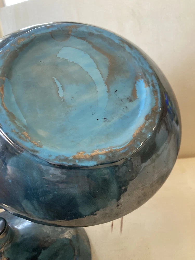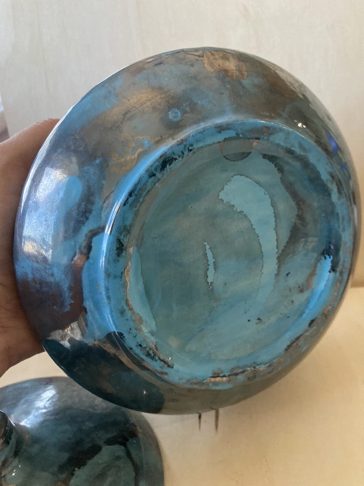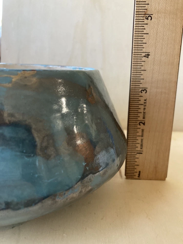 Vtg Iridescent Lustre Lusterware Pottery Lidded Dish Teal Blue Decor. Condition is Used. Shipped with USPS Ground Advantage.