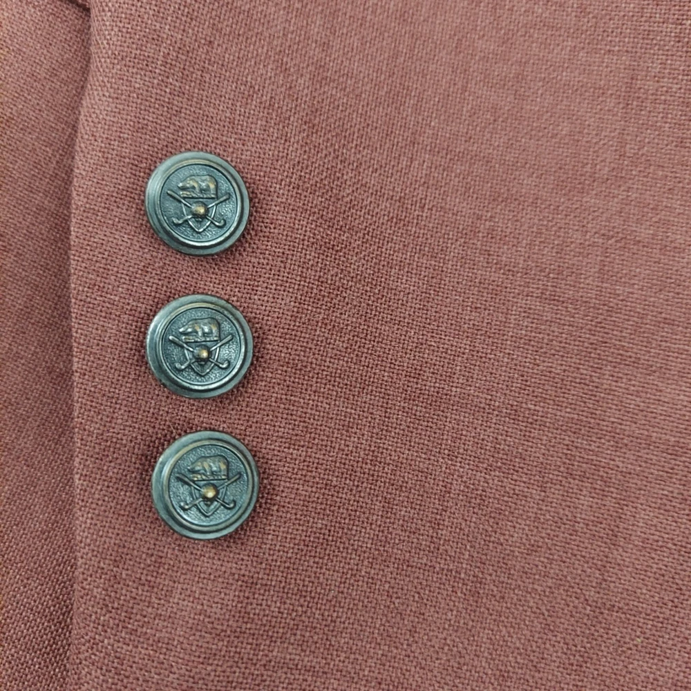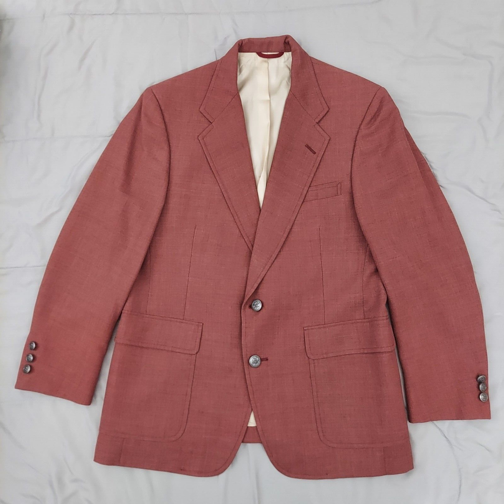 This vintage Hart Schaffner Marx sport coat featuring the iconic Jack Nicklaus Golden Bear label was made for Wilson’s CG (Country Club) of Course, Delaware . A classic piece of American tailoring, perfect for collectors, golf enthusiasts, or anyone who appreciates timeless menswear. The jacket is well-constructed with a rich brick red / chestnut tone , offering a polished yet distinctive vintage look suitable for dress or smart-casual wear. Condition: Excellent used vintage condition ✔ No visible holes, rips, stains, or defects Please see all photos for full condition details. Details: • Brand: Hart Schaffner Marx • Label: Jack Nicklaus Golden Bear • Made for: Wilson’s CG of Course, Delaware • Tag Size: Missing (see measurements below) • Color: Brick Red / Chestnut / Red • Care: Dry Clean Only Flat Measurements (Approximate): • Pit to Pit: 21" • Waist: 19.5" • Length: 29" • Sleeve: 23" 📏 Please compare measurements to a similar garment for best fit. Notes: Vintage sizing may differ from modern sizing. Colors may vary slightly due to lighting and screen settings. Questions are welcome—please ask prior to purchase. TMensBin