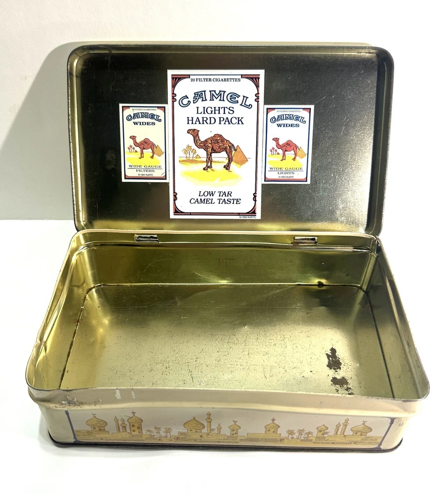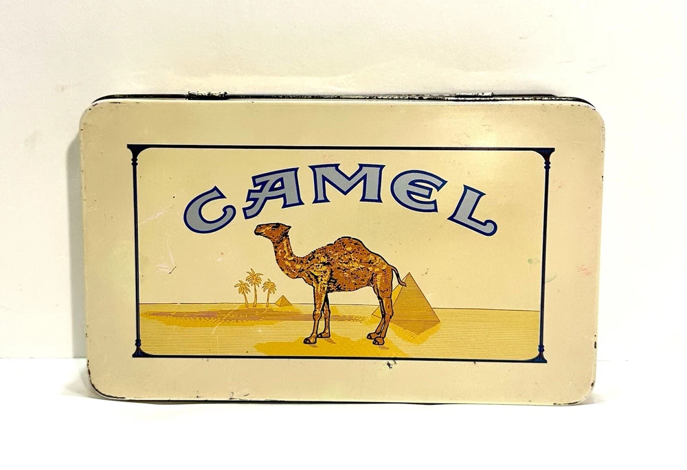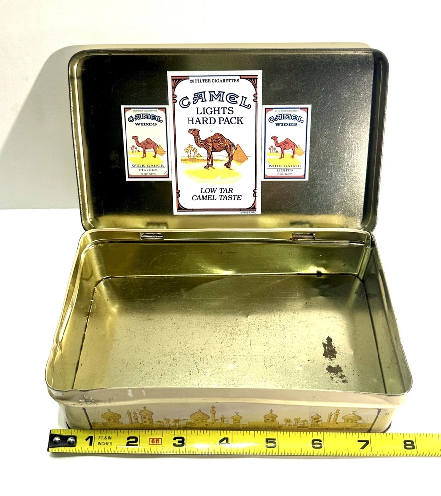 Vintage Camel Tobacco tin hinged rectangular can with stickers on inside dated 1991 and 1995. Can is in used condition with some flaws. Tin Can itself is dated 1992. RJRTC Measurements in Photos. Cross listed. Ships quick we care.