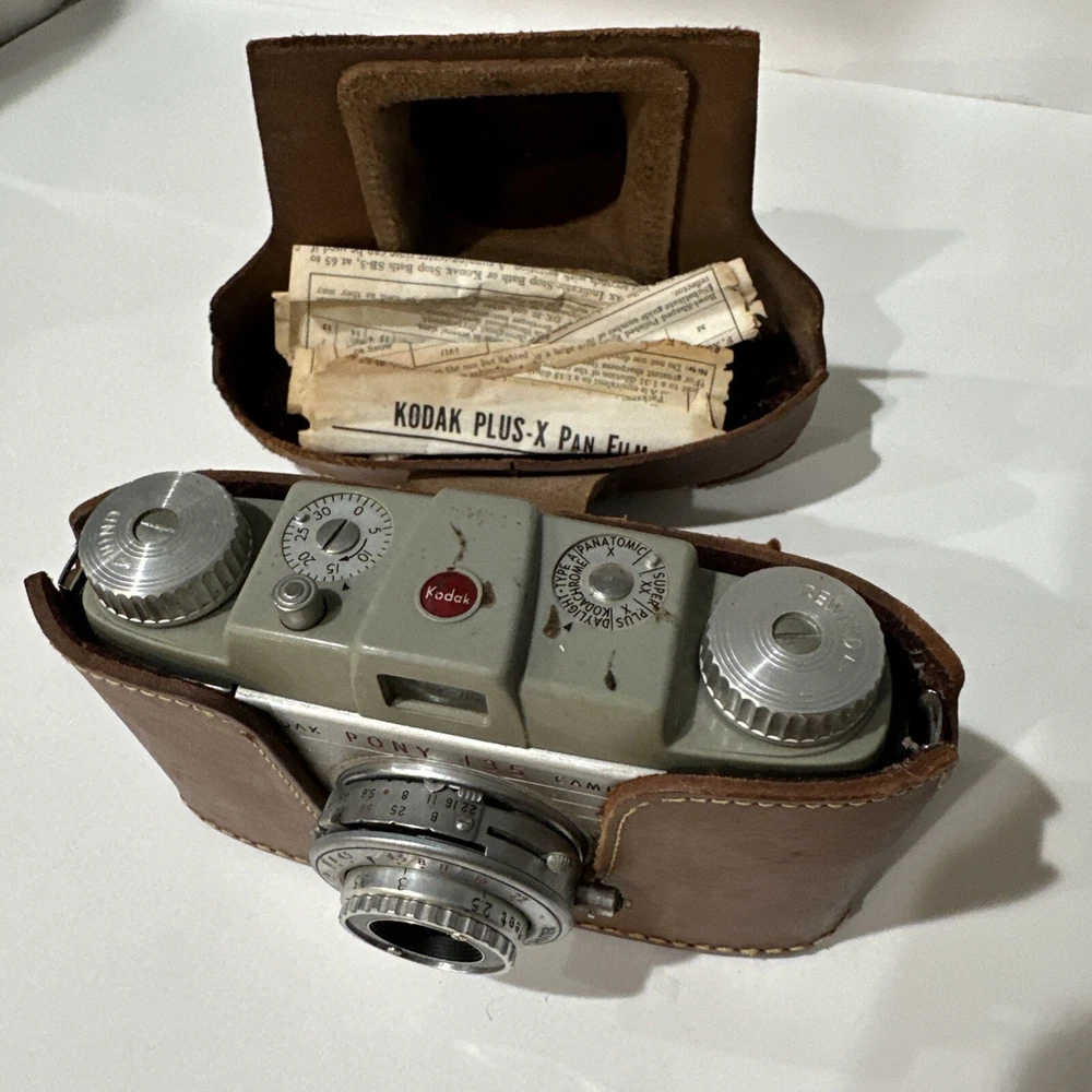 Vtg Kodak Pony 135 Model C 35mm Film Camera w Leather Kodak Case-Untested