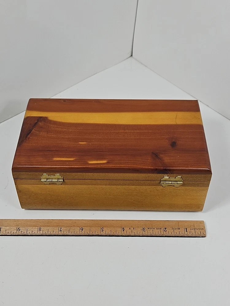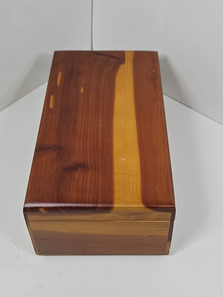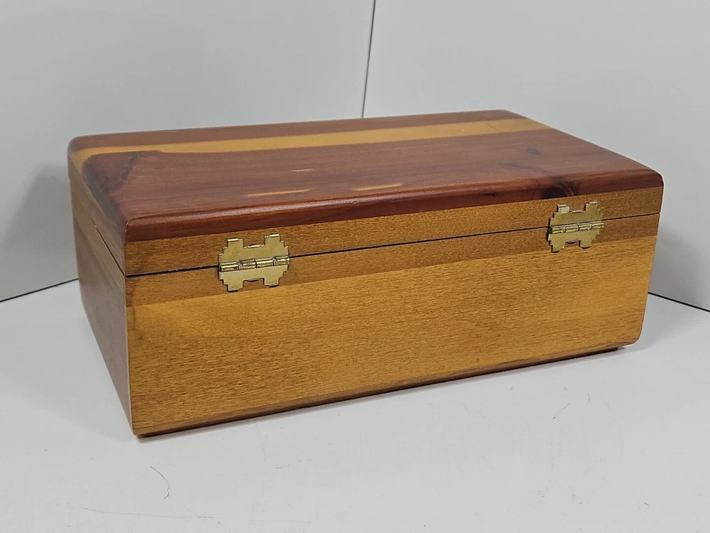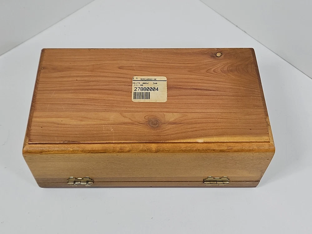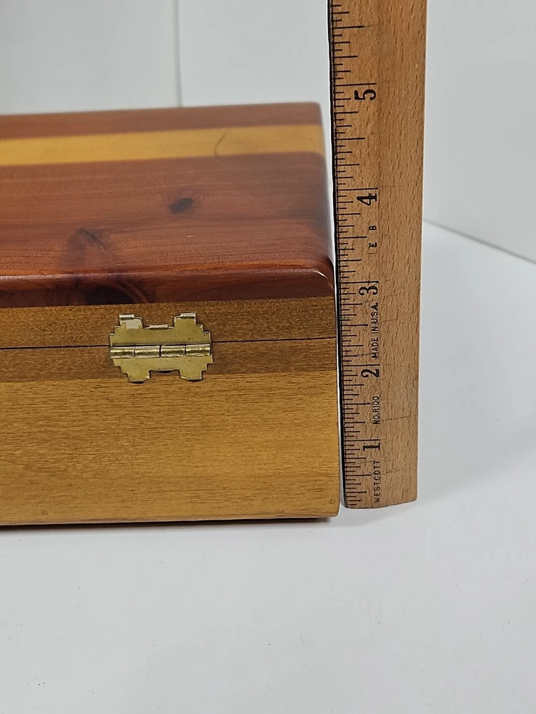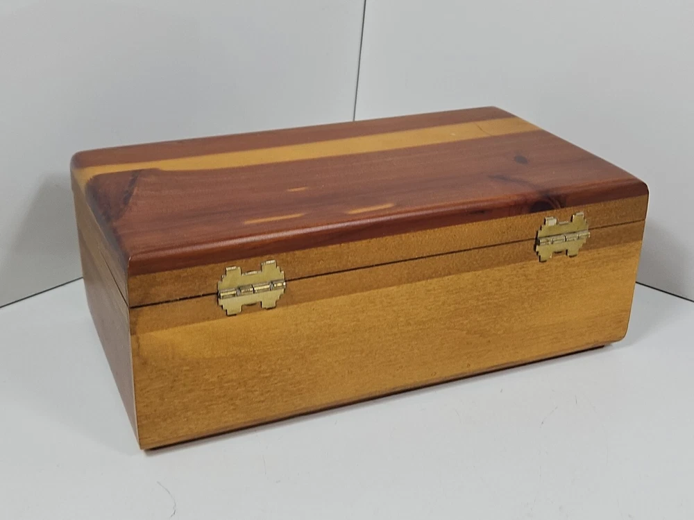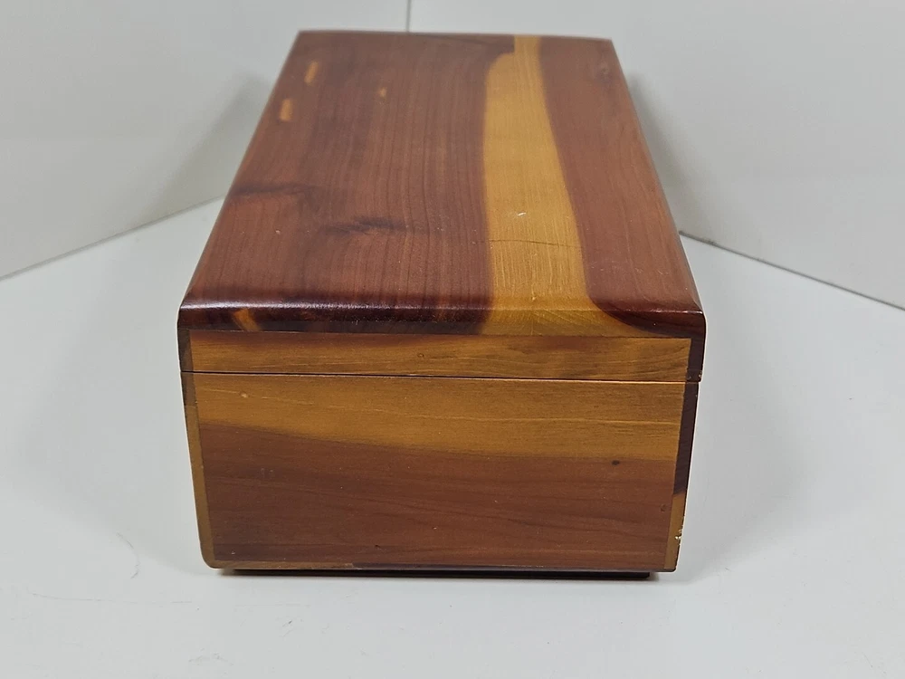 Vtg LANE Wooden Cedar Chest Jewelry Trinket Box K's MERCHANDISE Decatur IL Nokey No key. Small cedar chest trinket box. Lane presented by K's MERCHANDISE Peoria normal Decatur Illinois. See pictures. Product will be shipped timely and packaged with care. Offers are encouraged. Please feel free to reach out with questions. Please see pictures. Thank you. Good used condition. Light wear from age and use. Markings from age and use. See pictures This vintage Lane wooden cedar trinket box from K's Merchandise in Decatur, IL features a wood grain pattern in a small rectangular shape. The box is brown in color and has a key character design, suited for all occasions. It is from the mid to late 1900s and part of the Keepsake Boxes collection. The box is suitable for storing jewelry and other small items, and comes boxed. BS2
