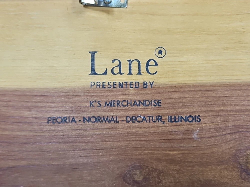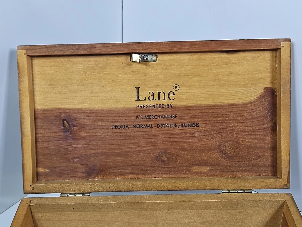 Vtg LANE Wooden Cedar Chest Jewelry Trinket Box K's MERCHANDISE Decatur IL Nokey