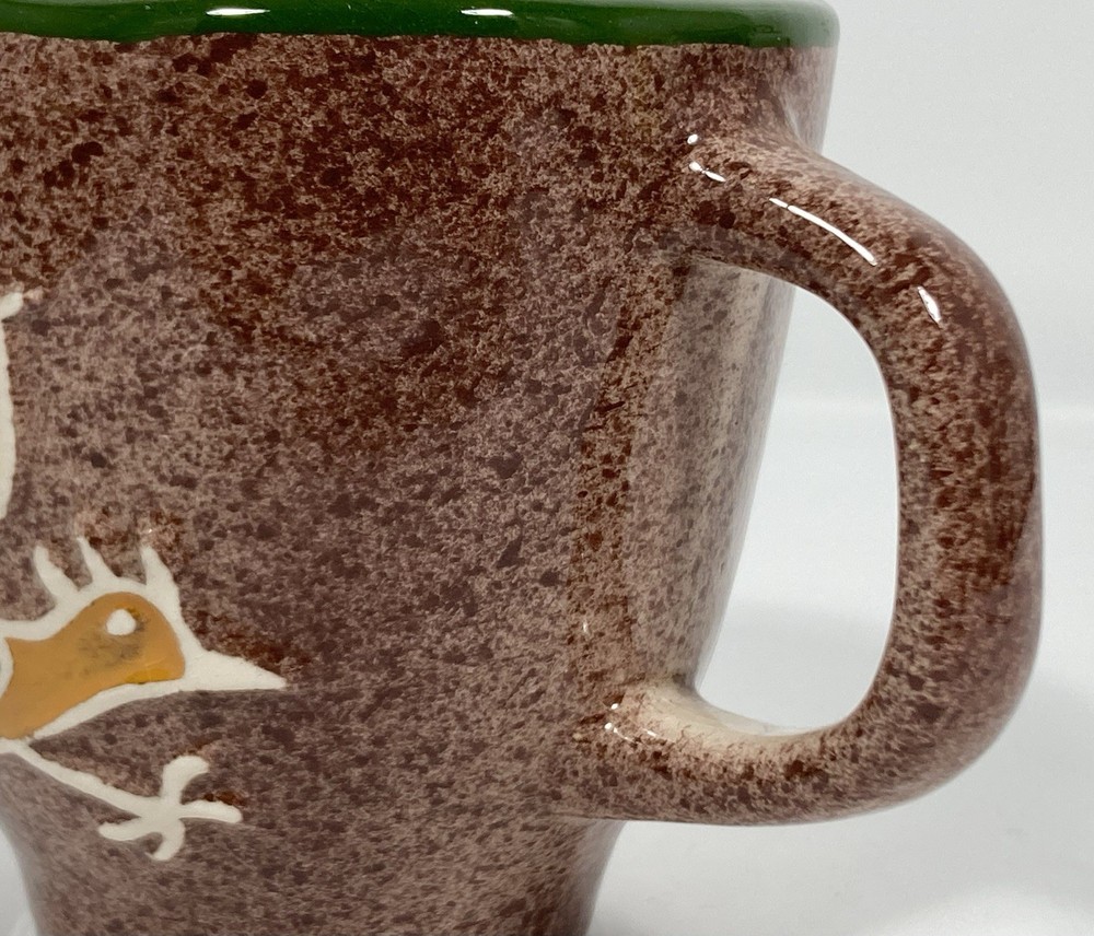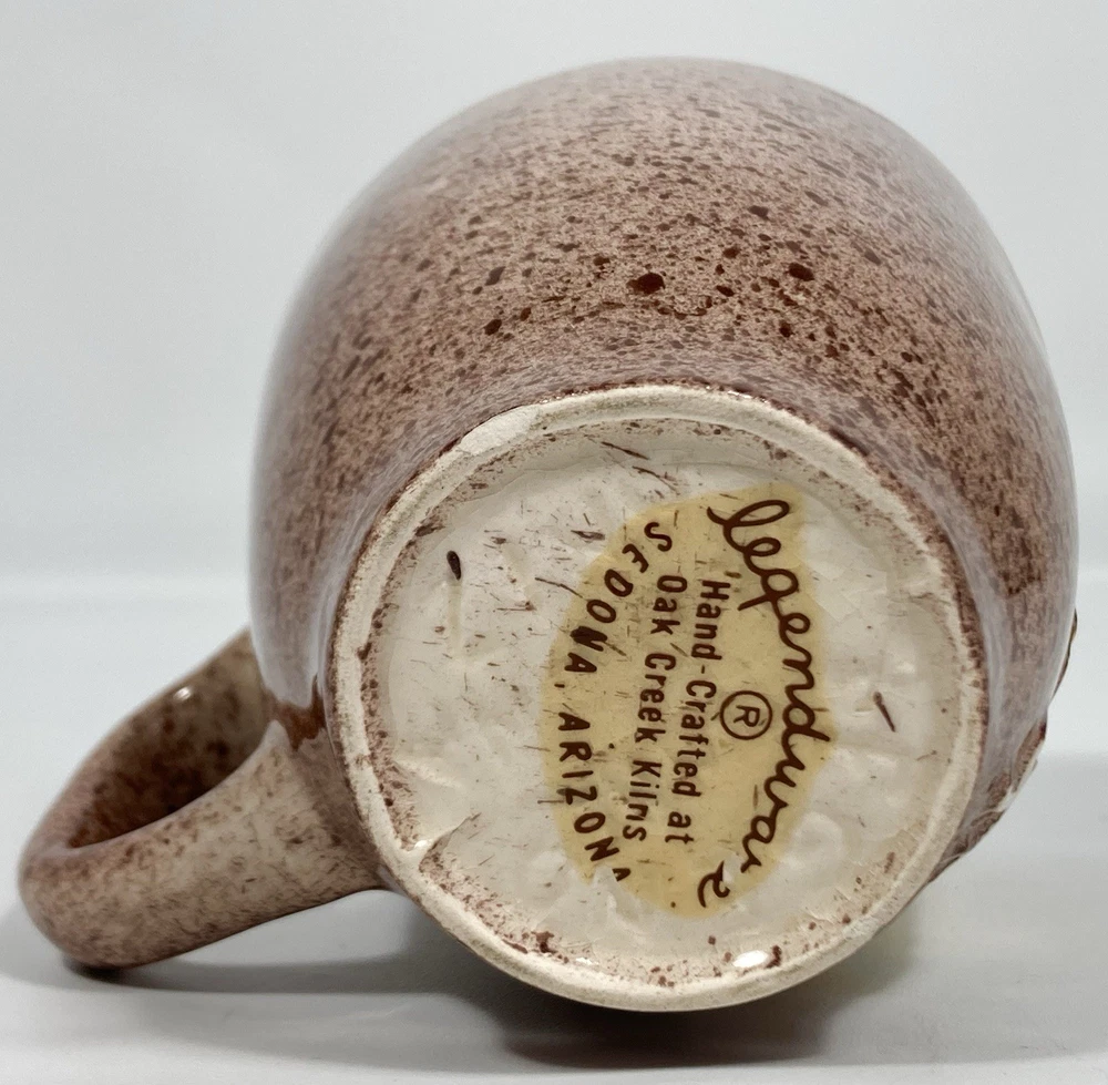 ~ Vtg LEGENDWARE Sedona Arizona Oak Creek Kilns Pottery ROADRUNNER Cactus Mug Cup 12oz ~ Nice, clean and shiny. No breaks. Has a Hairline and chip, please see photos. Crazing throughout. Holds: 12 ounces Measures Approx.: 3 1/2" tall 3 3/4" top diameter ~ Please see all photos for details as they are part of the description, use Zoom and ask questions before bidding ~ Returns as per eBay Policy, " If a buyer needs to return an item, it must be returned in the same condition in which it was received, and it must include all items that were in the original package. " Feel free to email us with any concerns or questions through the "Ask Seller A Question" option. Thank you for considering us in your shopping. ~~ Please check out our other items in our eBay store, you will never know what you will find! ~~
