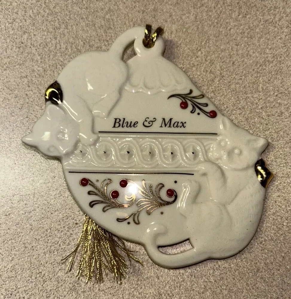 Vtg LENOX Jeweled Holiday Blue & Max Kittens Cat Christmas Holiday Ornament