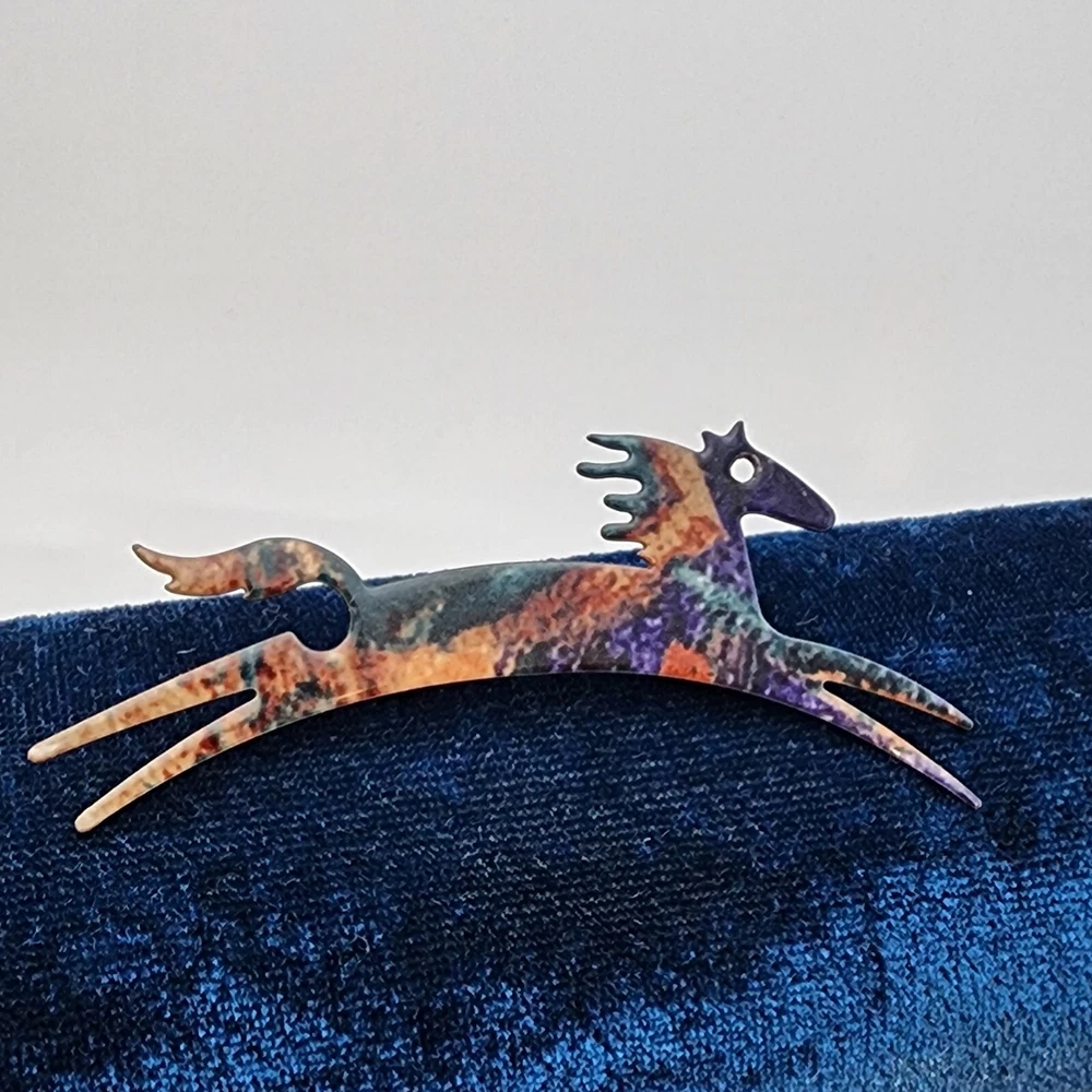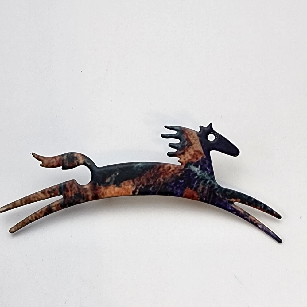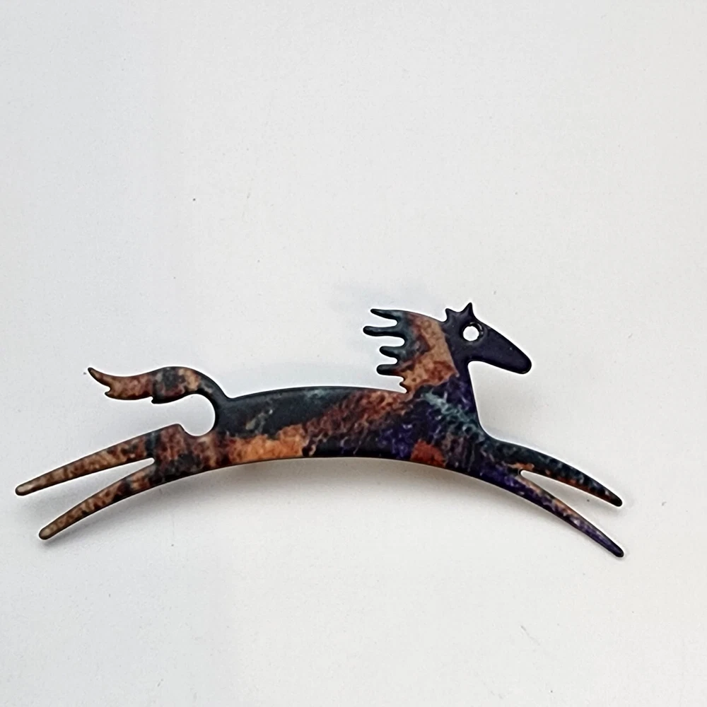 Vtg Lazart Leaping Jumping Running Horse Multi Colored Metal Enameled Southwestern Pin