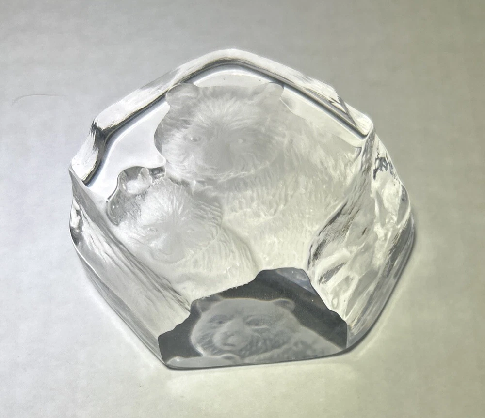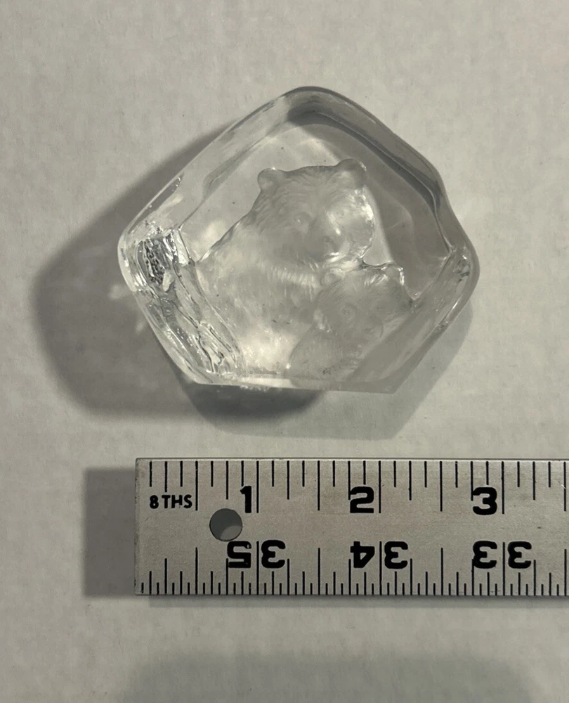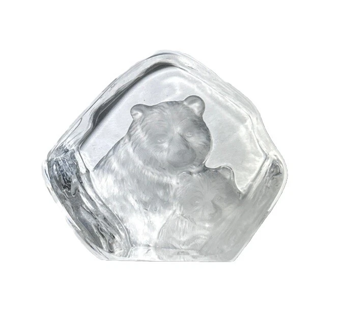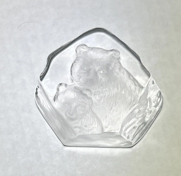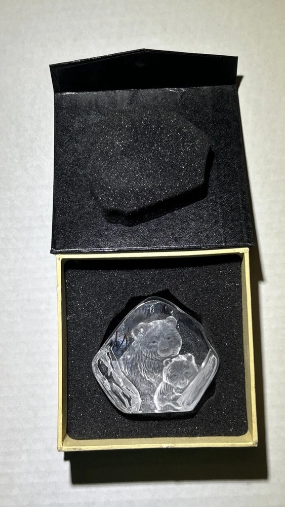 Vtg Lead Crystal Bear And Cub Paperweight 3D Etched Carved Black Light Grizzly