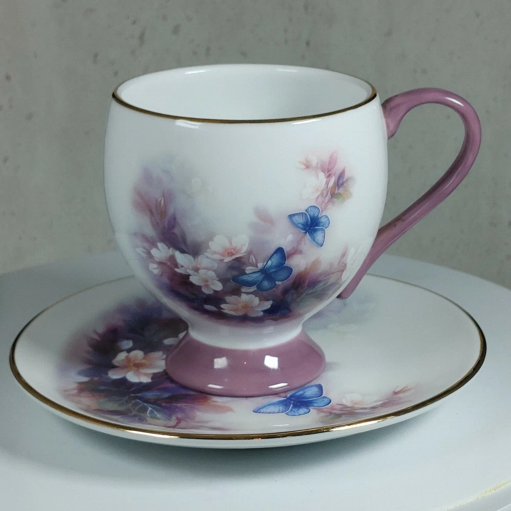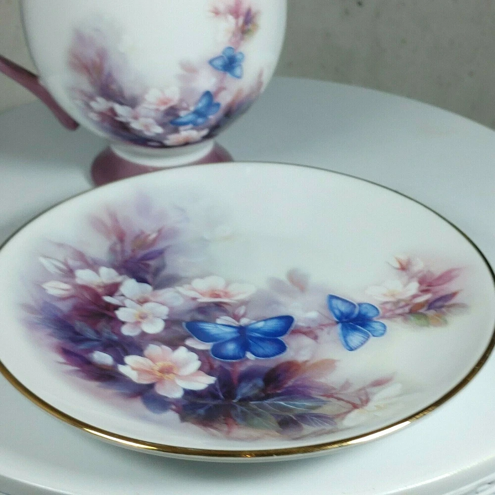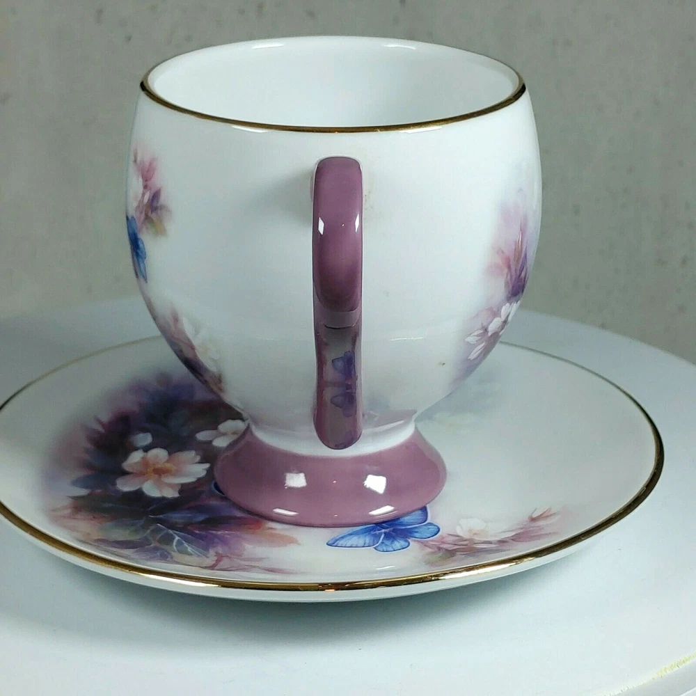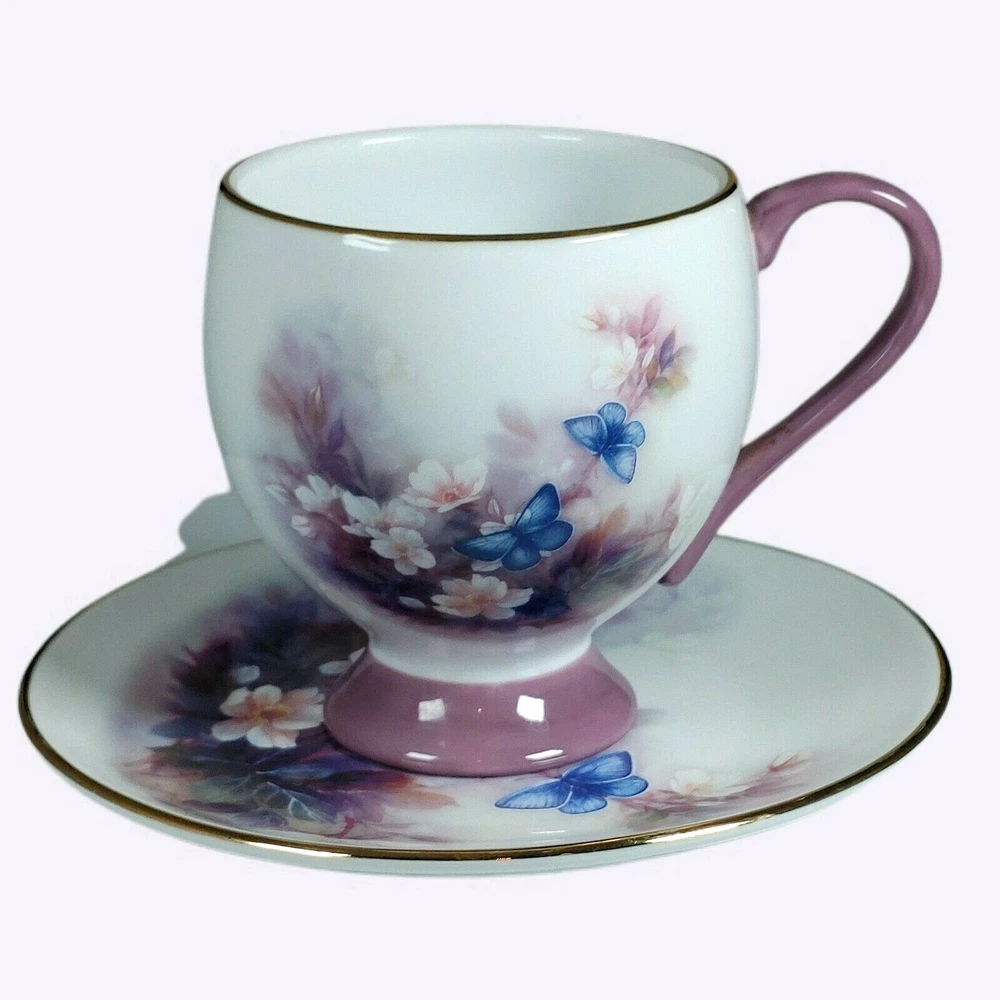 Enjoy your morning coffee in style with this vintage Lena Liu coffee cup and plate set. The set features a beautiful floral pattern of blossoms and butterflies in a lovely shade of mauve, making it perfect for all occasions. Made of high-quality porcelain, this set includes an 8 fl oz cup and matching saucer, both decorated with the stunning floral design. This set is perfect for collectors and anyone who appreciates the beauty of floral art. With its delicate details and charming theme, it makes a great addition to any home or as a thoughtful gift for a loved one. Don't miss the chance to add this unique and elegant set to your collection! Happy Holidays! *USA buyers save with currency exchange on purchase.We ship UPS, Canada Post and Fedex as postage requires. Thank you for being a valued customer!